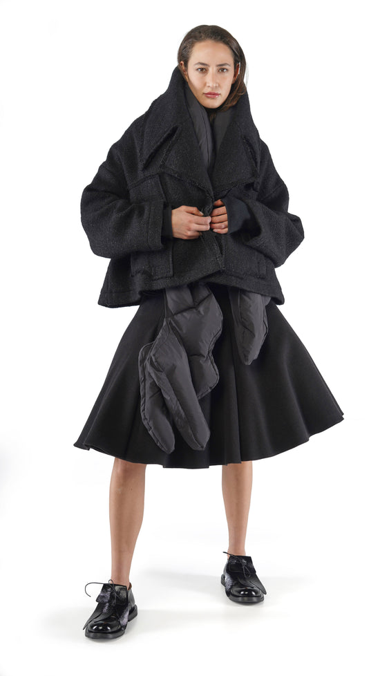 Each piece is a statement—whether it’s a sculptural silhouette in pure black or a bold print that whispers with artistic intent. The collection offers something for every mood: refined staples for the everyday, and directional pieces that push boundaries without ever sacrificing sophistication.