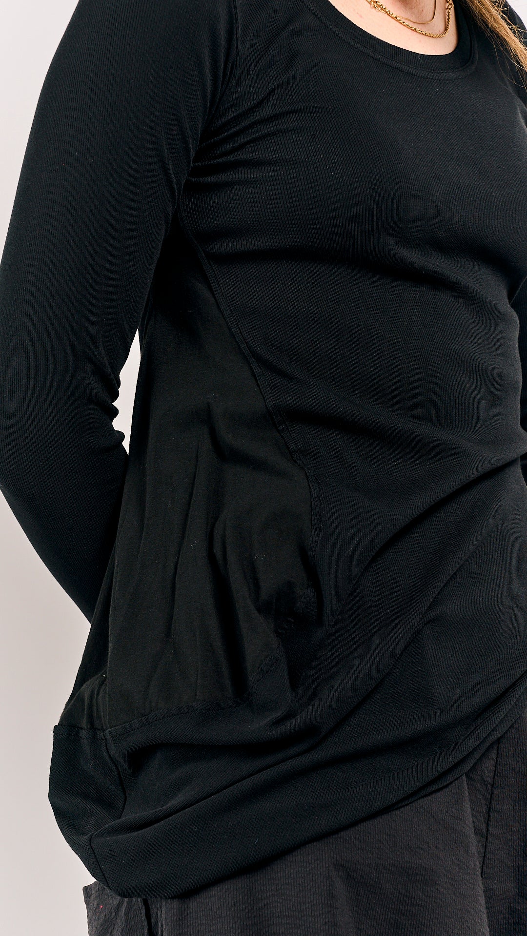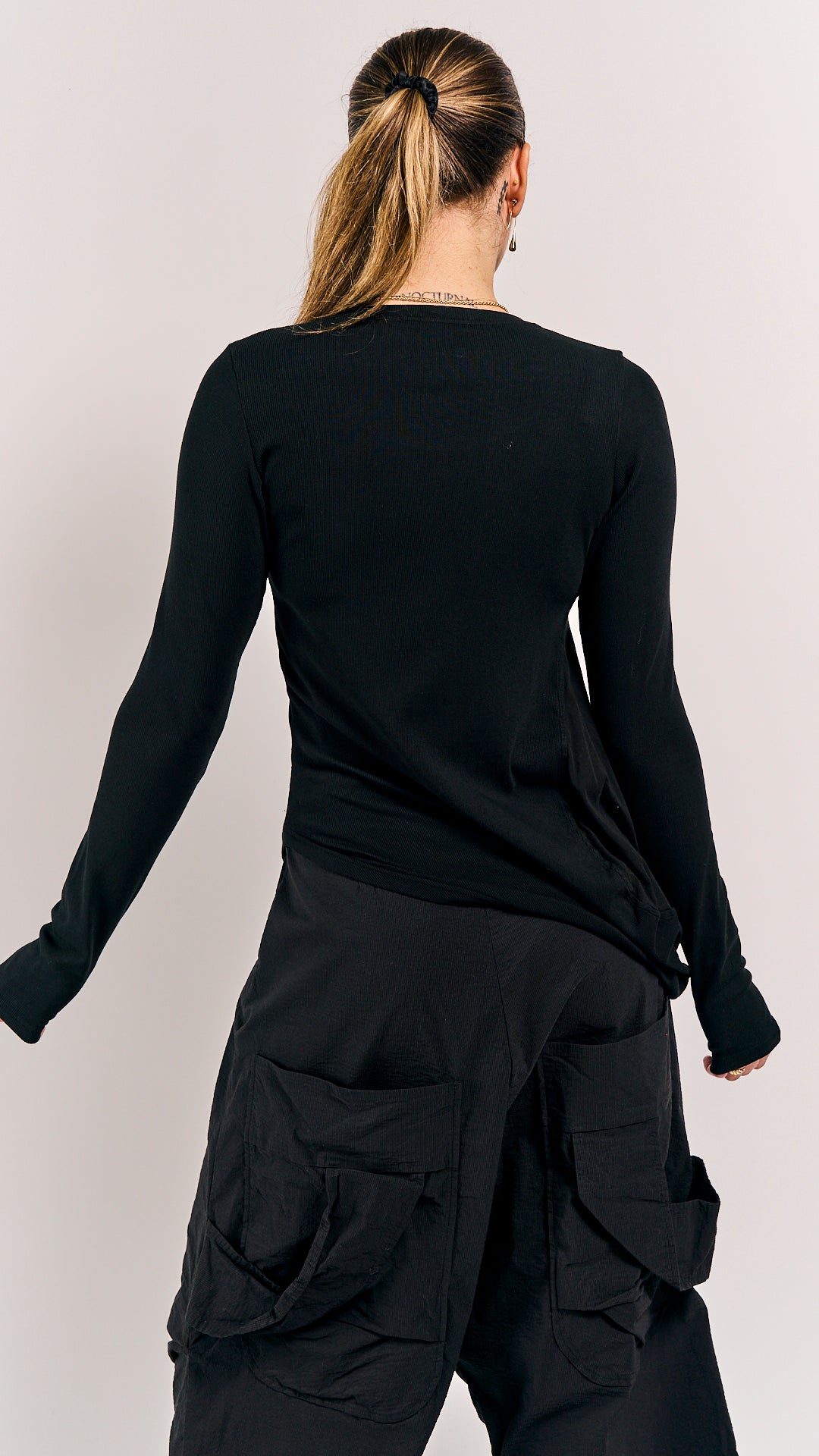 Rundholz Mainline's take on the essential basic—rendered in a classic black hue that feels anything but ordinary. Long sleeves, relaxed proportions, and that signature Rundholz ease make this a wardrobe anchor that actually has personality. Layer it, wear it solo, or let the color do the talking.