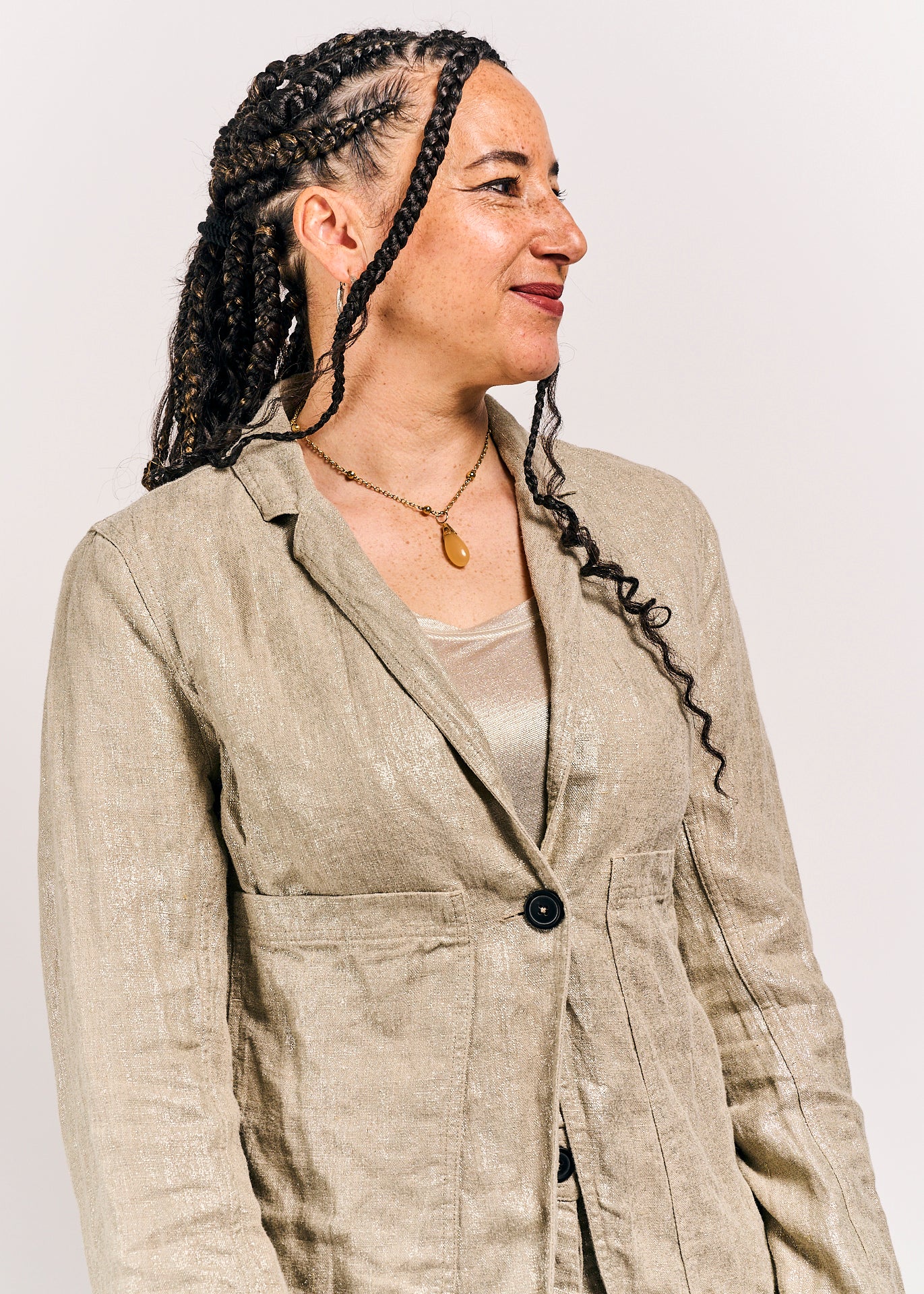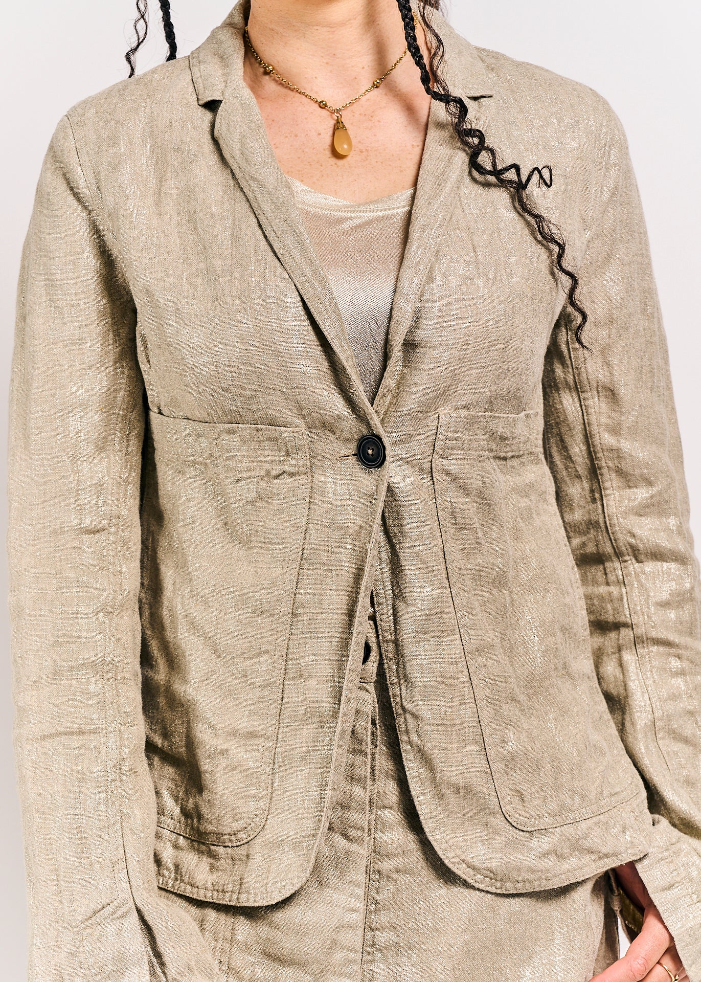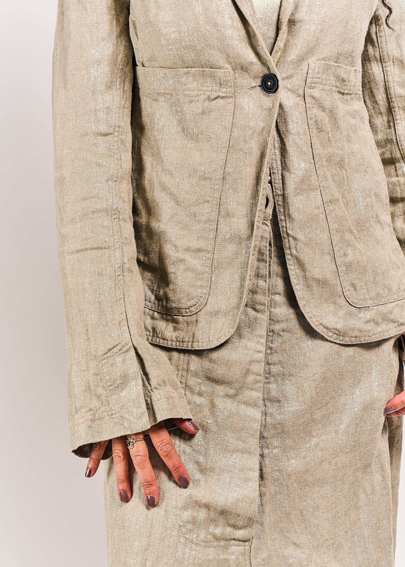 "Light up the room with this Rundholz Mainline Jacket, complete with a button closure, pockets for convenience, and a sparkly dust finish. This tight-fitting, short jacket is perfect for adding a touch of glamour to any outfit."