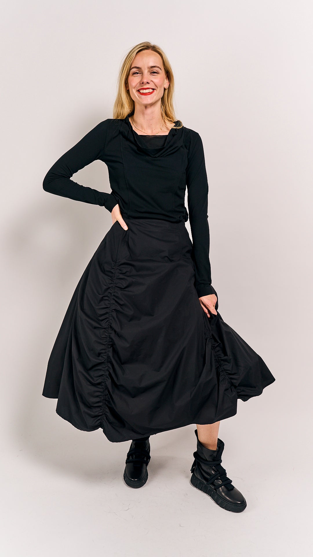 This classic black skirt from Rundholz Mainline is your new go-to for every season. Its timeless style pairs effortlessly with anything, making it perfect for playful days out or chic evenings in. Combine it with Black Skirt 1230313 to complete the look (second photo).
