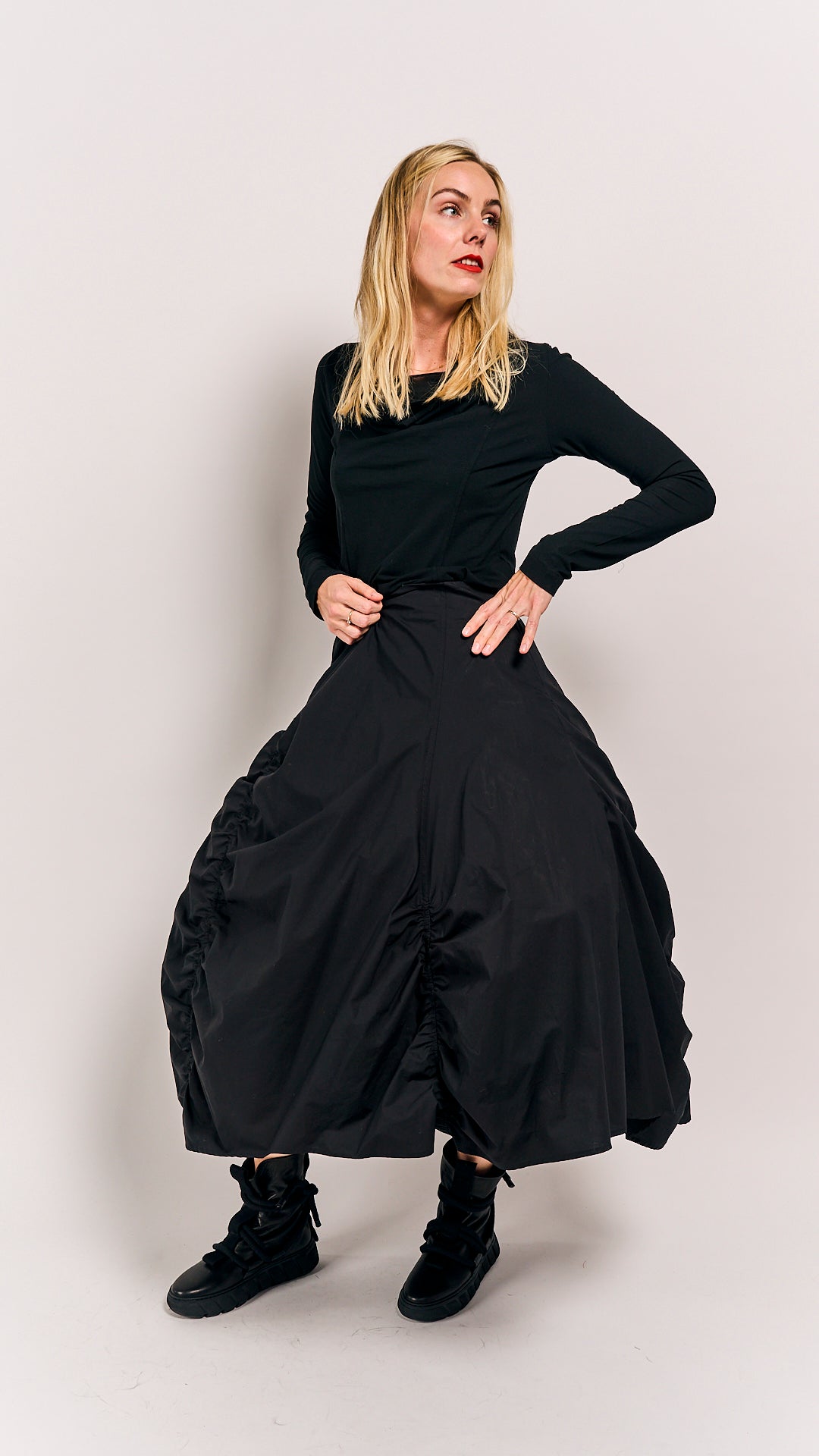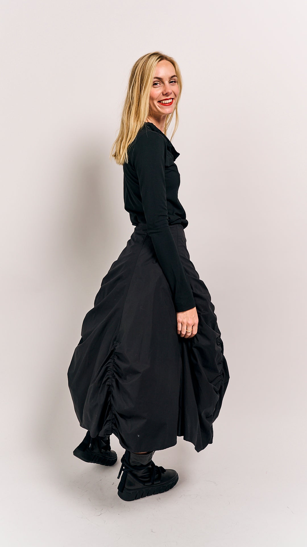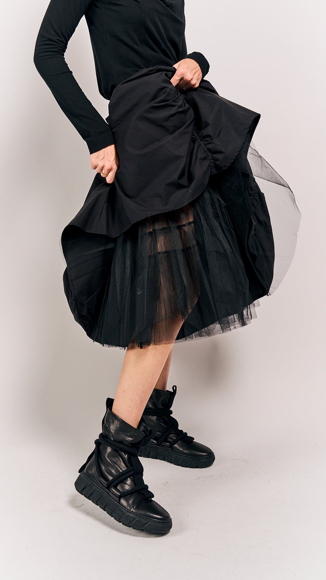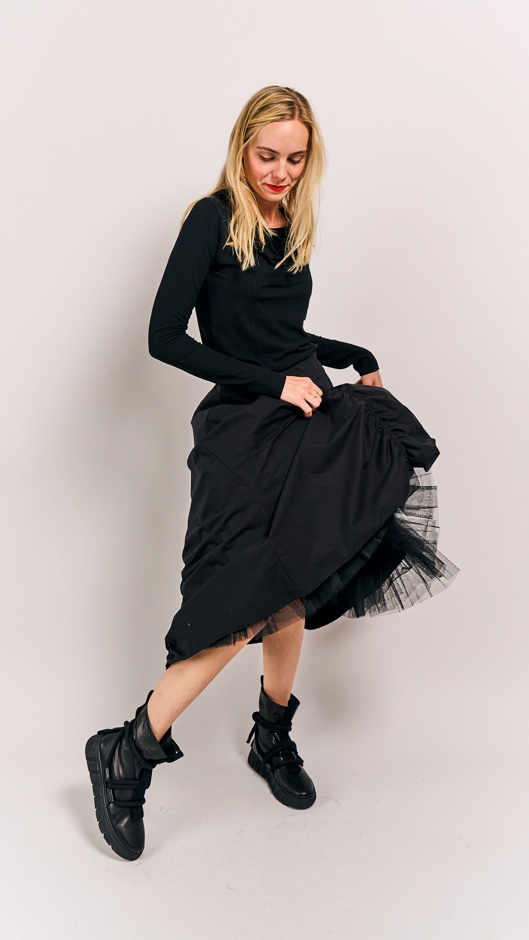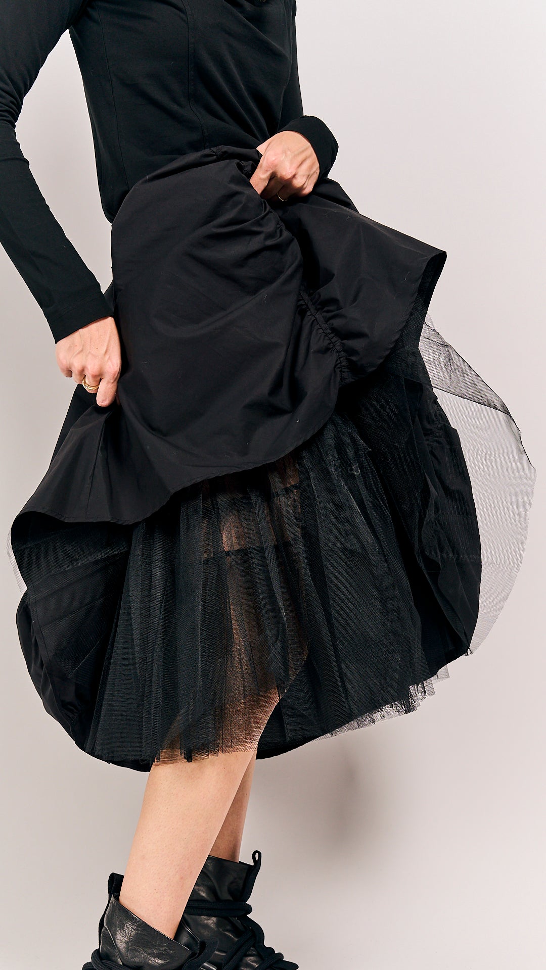 This classic black petticoat from Rundholz Mainline is your new go-to for every season. Its timeless style pairs effortlessly with anything, making it perfect for playful days out or chic evenings in. Combine it with Black Skirt 1230303 to complete the look (second photo).