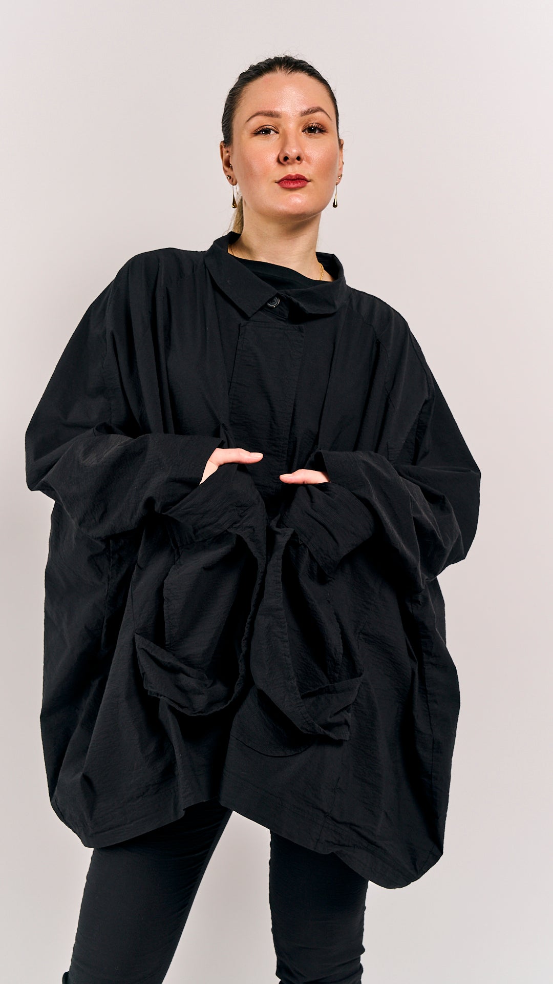 Rundholz Mainline's oversized jacket in black—a classic color that commands attention without apology. Cut to embrace rather than constrain, this one-size piece adapts to your frame and mood, layering over everything from slip dresses to chunky knits.