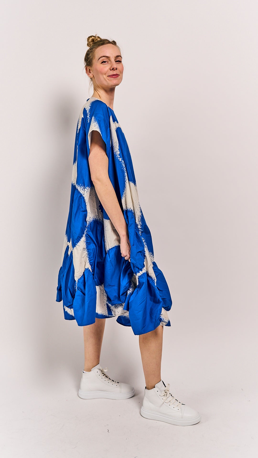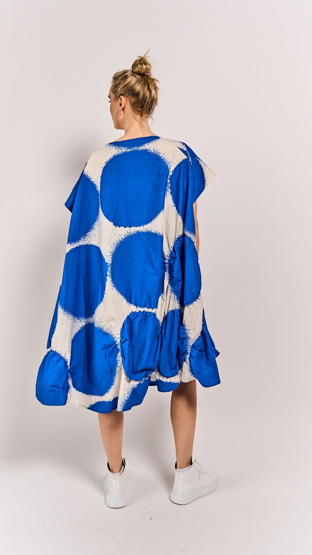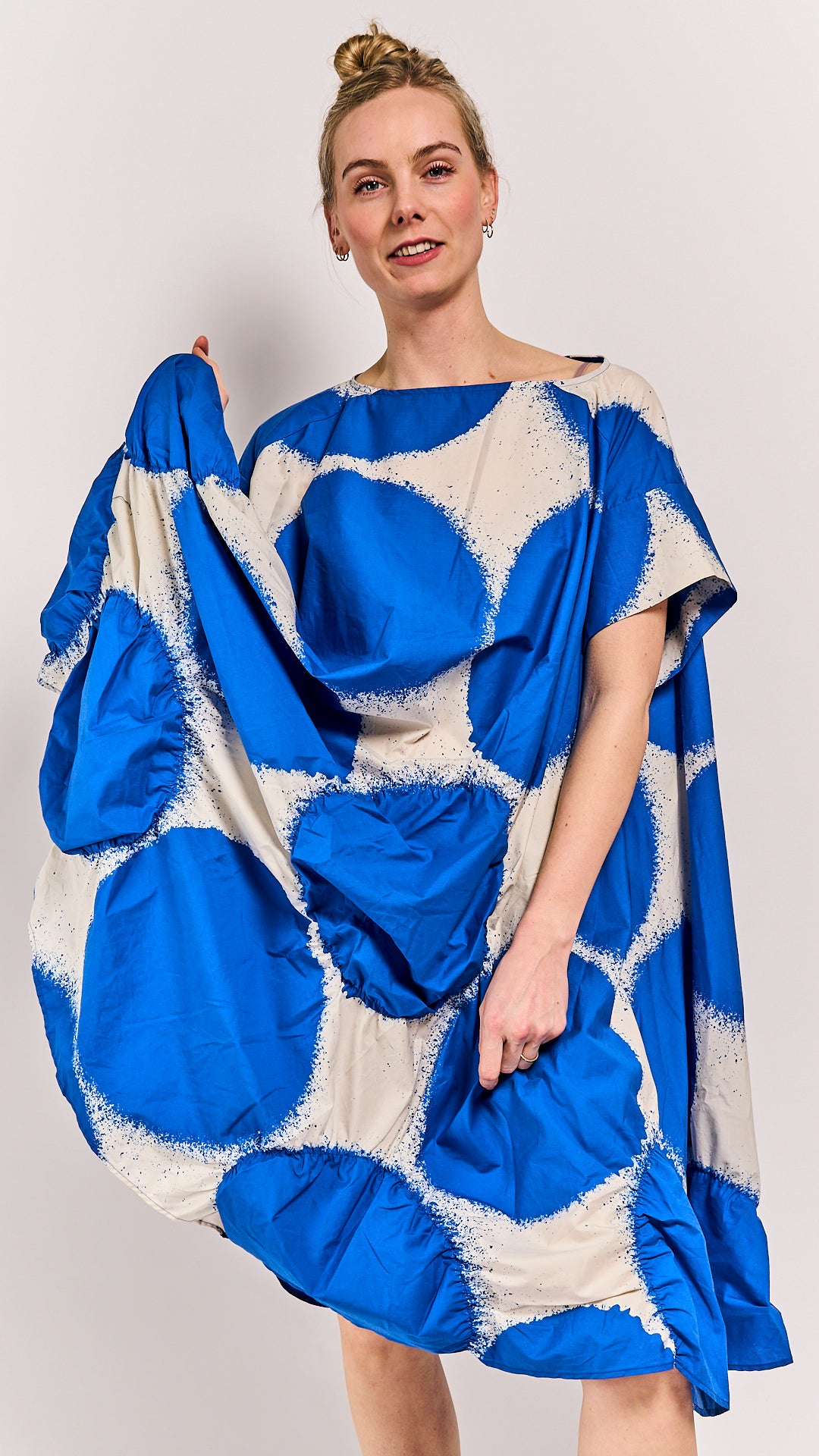 Rundholz Mainline cotton dress featuring a bold electric print that brings unexpected personality to your everyday rotation. The relaxed silhouette and breathable fabric make it effortlessly wearable, while the graphic round print design delivers a playful visual punch. A versatile piece that pairs equally well with minimalist accessories or layered styling for maximum impact.