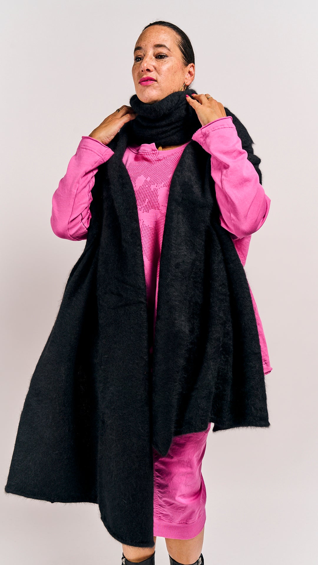 Wrap yourself in cozy luxury with this big black shawl from Rundholz Mainline. Crafted from 100% raccoon fur, it’s the perfect winter companion to keep you warm and stylish. Its classic black hue adds a timeless touch to any outfit, making chilly days feel a little more fabulous.