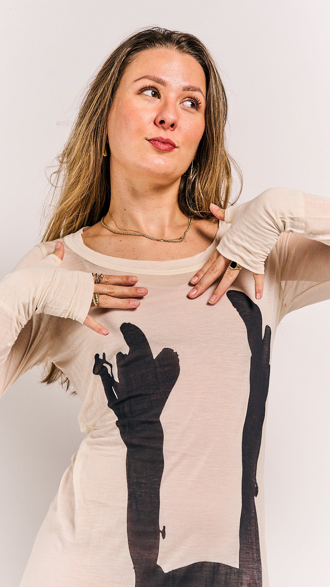 This playful Rundholz Mainline dress features a delicate, transparent fabric that adds a light and airy feel to your look. The bone black print creates a striking contrast, making it perfect for those who love to stand out with subtle elegance. Ideal for warm days or layered styling, this dress brings effortless charm and a touch of whimsy to your wardrobe.