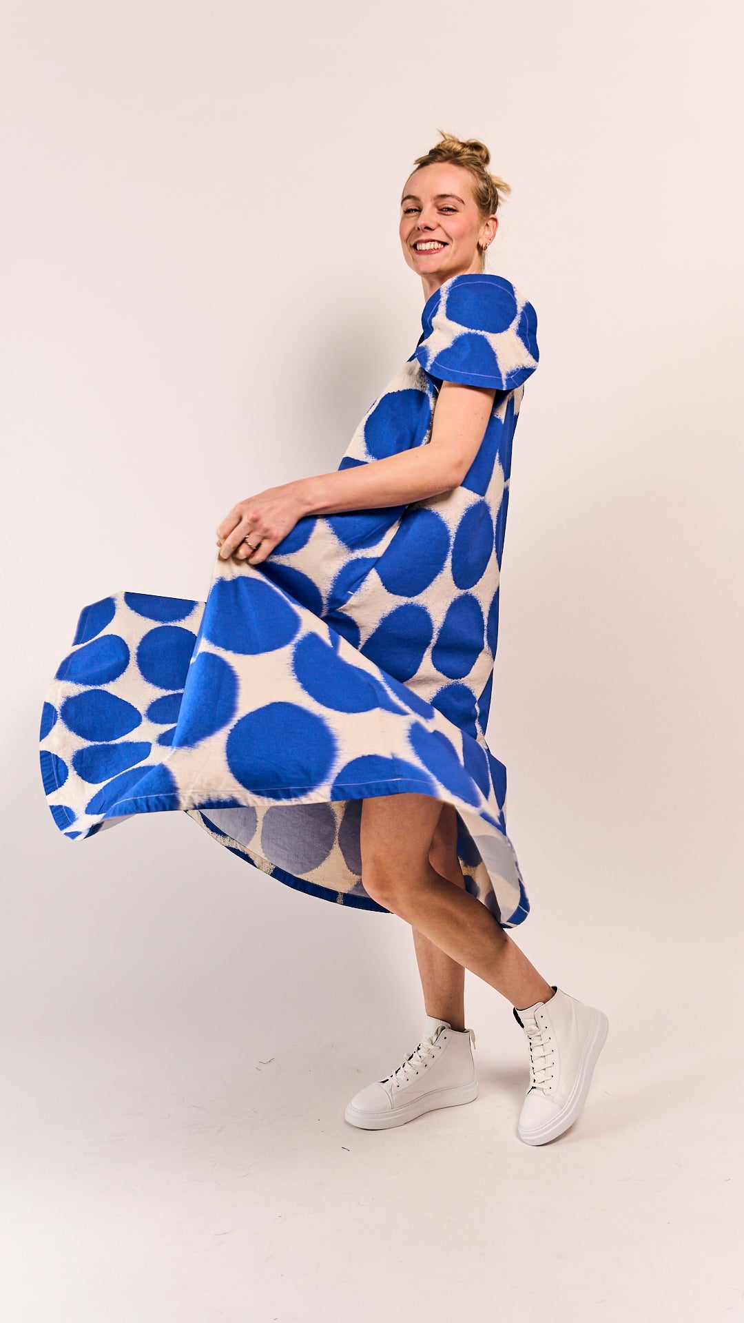 A striking Rundholz Mainline piece that commands attention with its bold round-shape print. The dress features an inventive shoulder design that breaks from convention, creating unexpected visual interest and movement. The electric print pattern brings energy and personality to your wardrobe, while the thoughtful construction ensures a refined silhouette. Perfect for those who embrace statement dressing with confidence and flair.