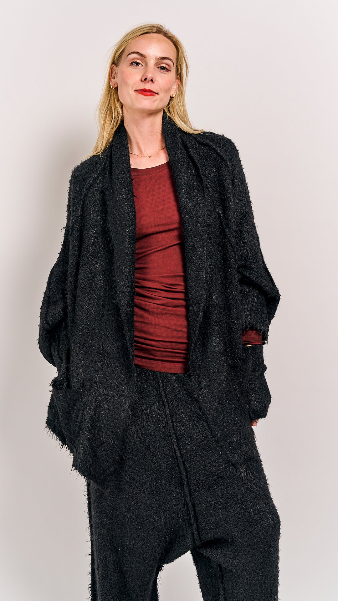 Experience the charm of luxury with this oversized silk jacket from Rundholz Mainline. In a deep black color, it drapes effortlessly for a stylishly relaxed look that’s as comfortable as it is eye-catching. Perfect for adding a playful twist to your wardrobe essentials.