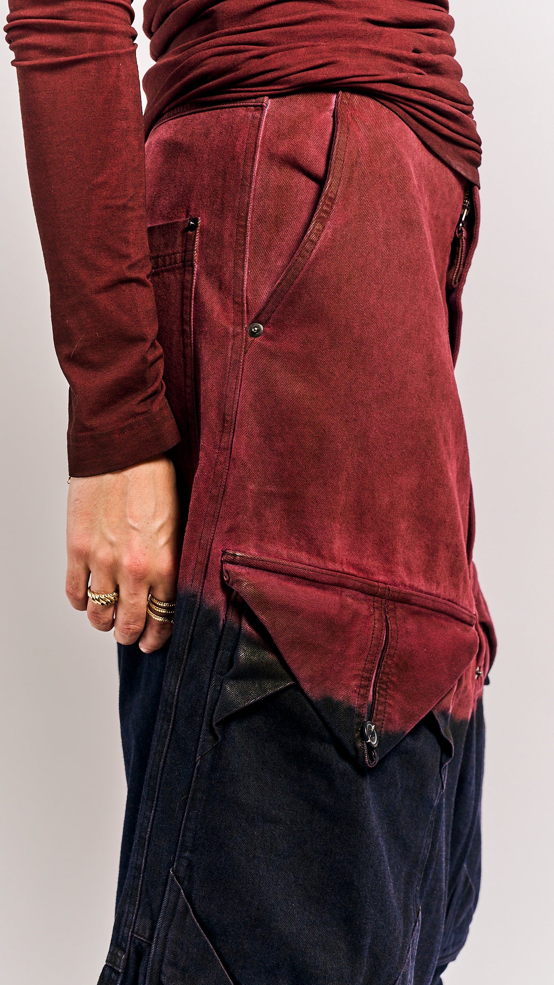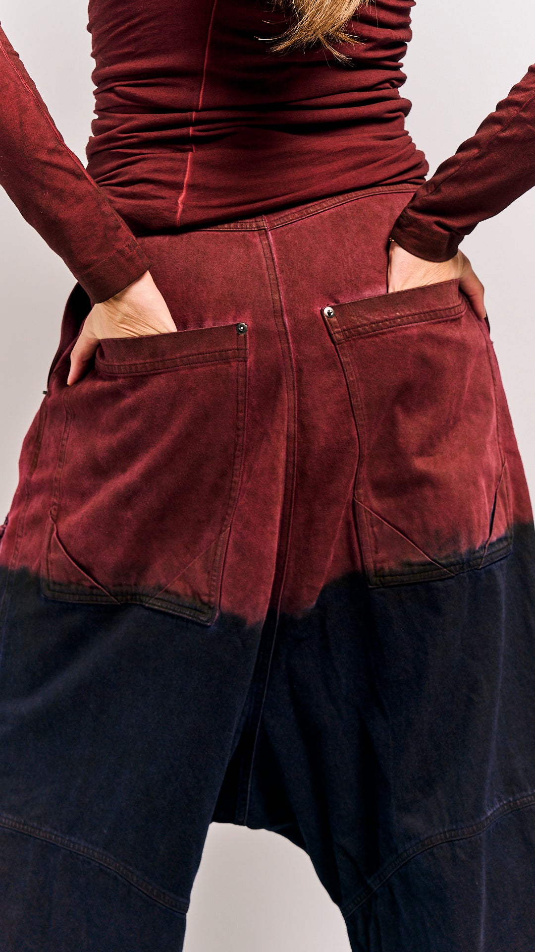 These low crotch trousers from Rundholz DIP bring a playful twist to your wardrobe with their unique two-tone design. Crafted from 100% cotton, they offer comfort and breathability while making a bold style statement. Perfect for those who love to mix comfort with a splash of color and creativity.