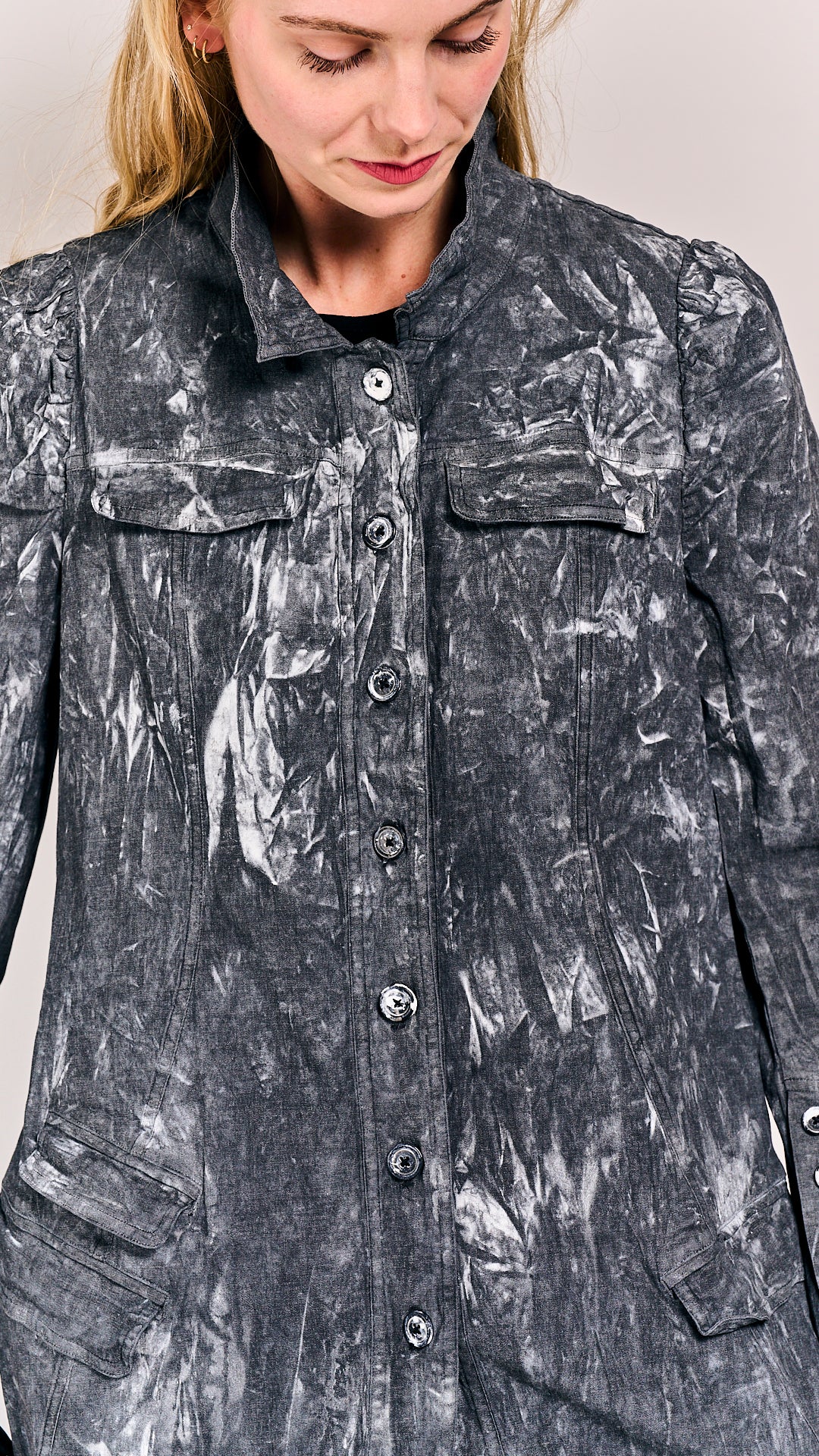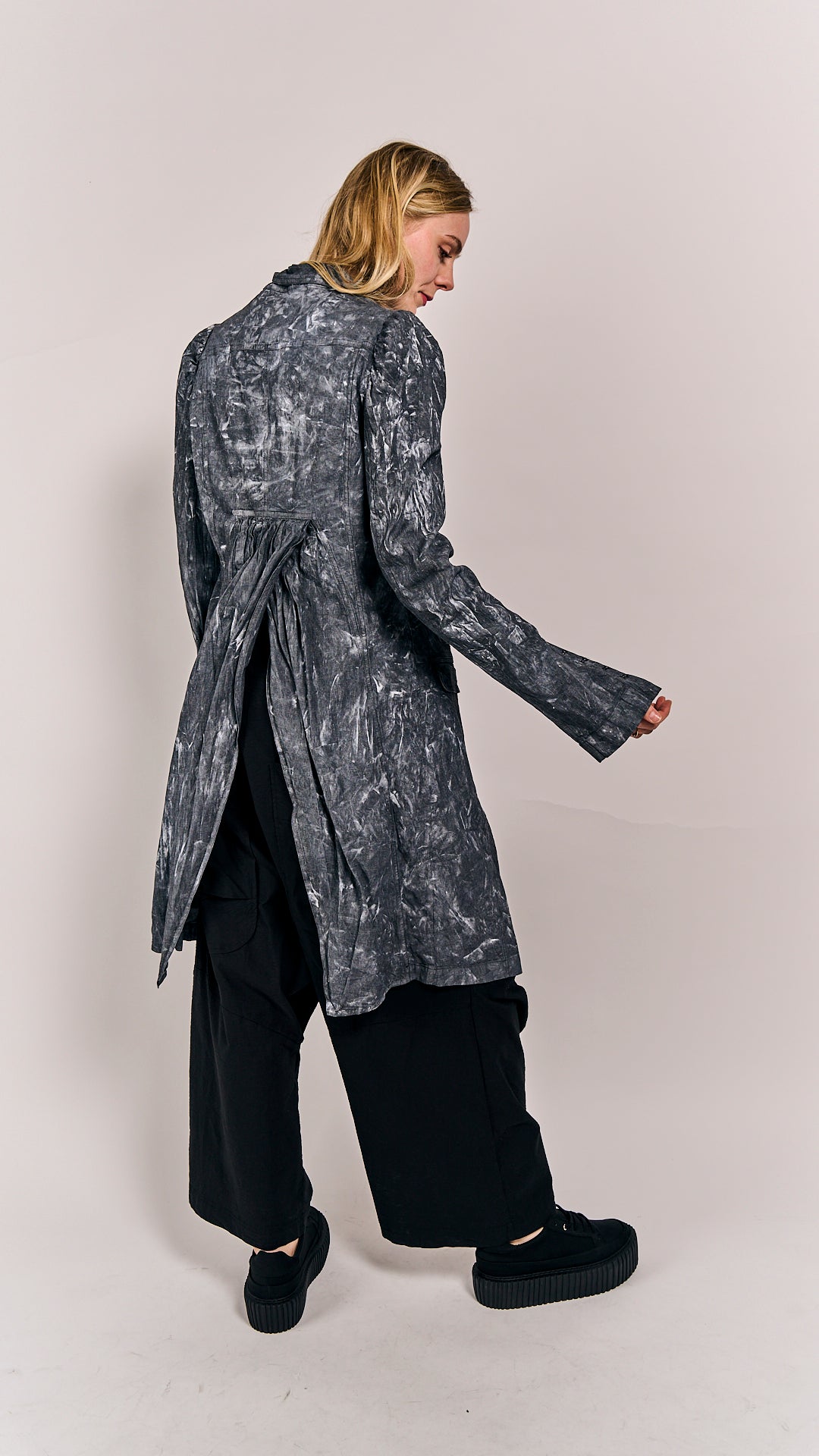 Rundholz DIP's architectural vision meets summer ease in this long coat. Crafted from a breathable cotton-elastin blend, it moves with you while maintaining its sharp, sculptural silhouette. The "Black Fog" palette—a moody, sophisticated neutral—pairs effortlessly with everything from minimalist basics to bold statement pieces. Perfect for layering through transitional seasons or throwing on for an instant editorial edge. A wardrobe essential that feels both timeless and refreshingly modern.