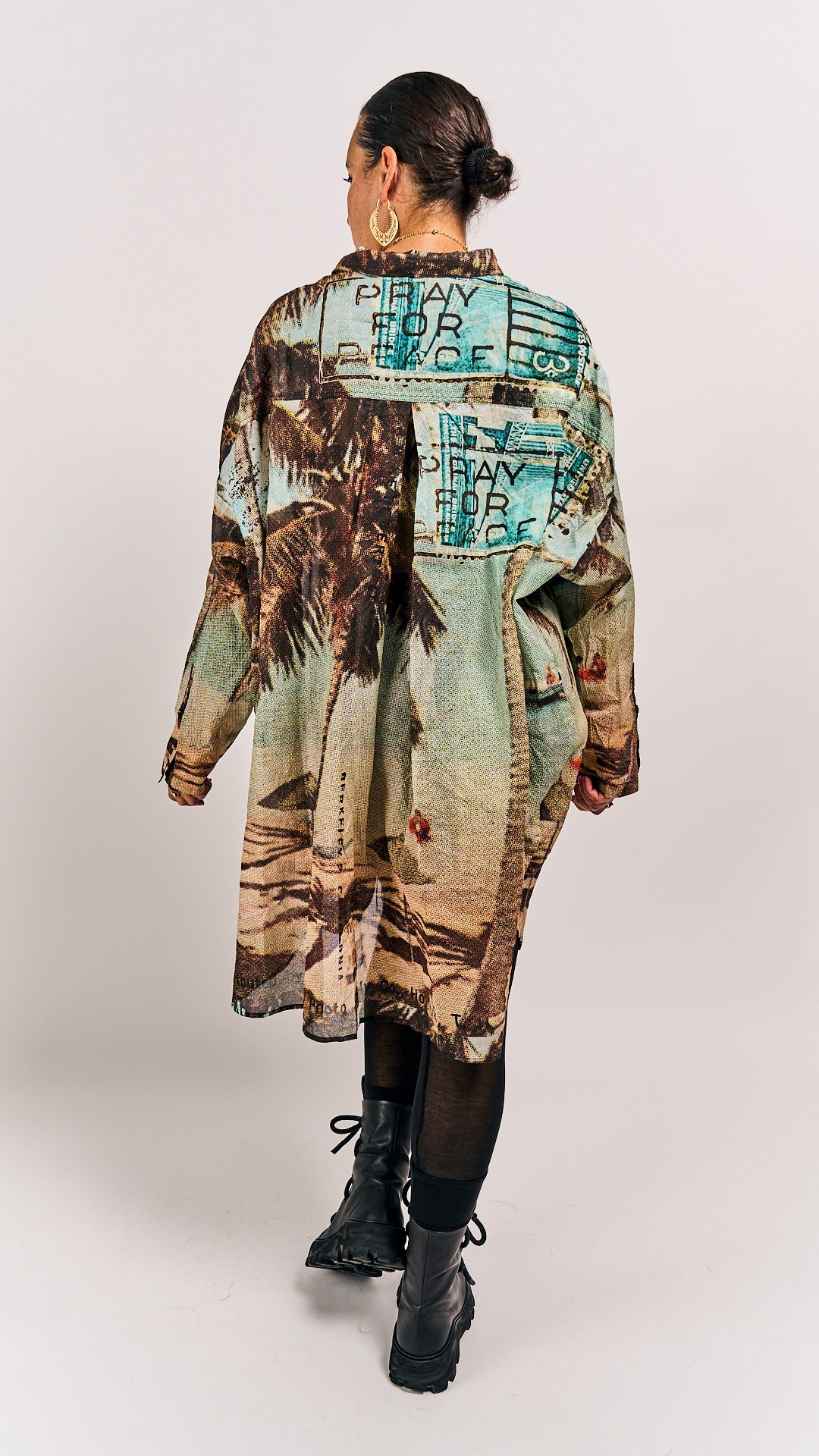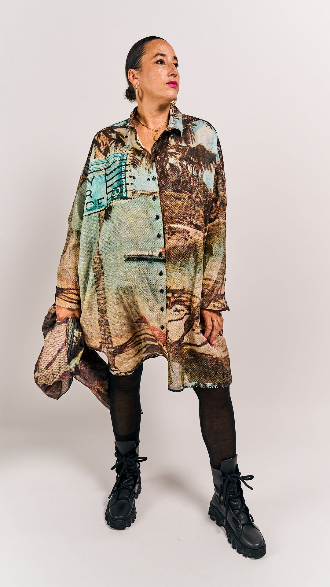 This playful long blouse from Rundholz DIP features a vibrant Bermuda print that brings a splash of fun to your wardrobe. Made from soft cotton, it offers comfort and breathability for all-day wear. Perfect for adding a lively touch to your casual outfits with ease.
