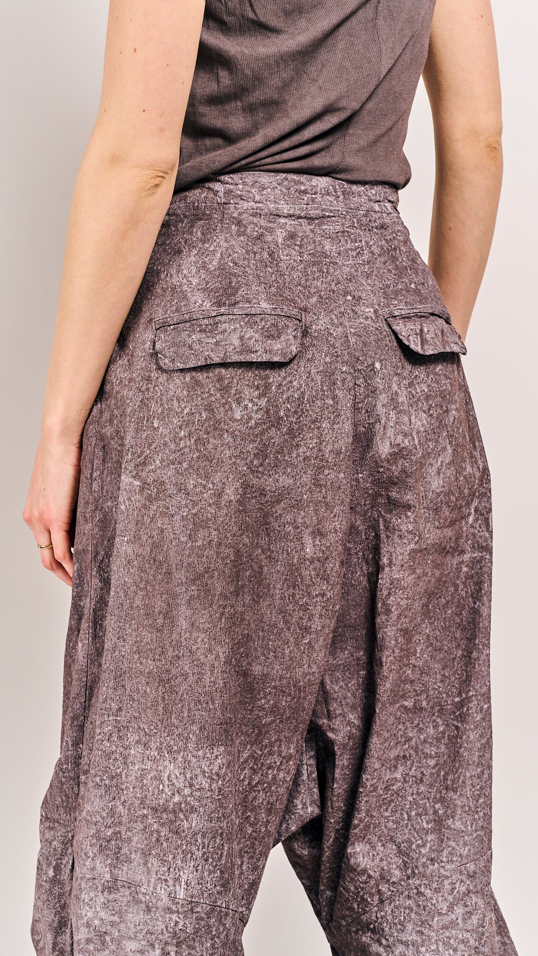 These Rundholz DIP trousers embrace the brand's signature dropped crotch for an avant-garde silhouette that defies convention. The foggy print—soft, diffused, almost dreamlike—adds an air of mystery to every step. Effortlessly cool for those who see trousers as a statement, not a basic. Layer them with crisp tops or flowing layers; they'll steal the show either way.