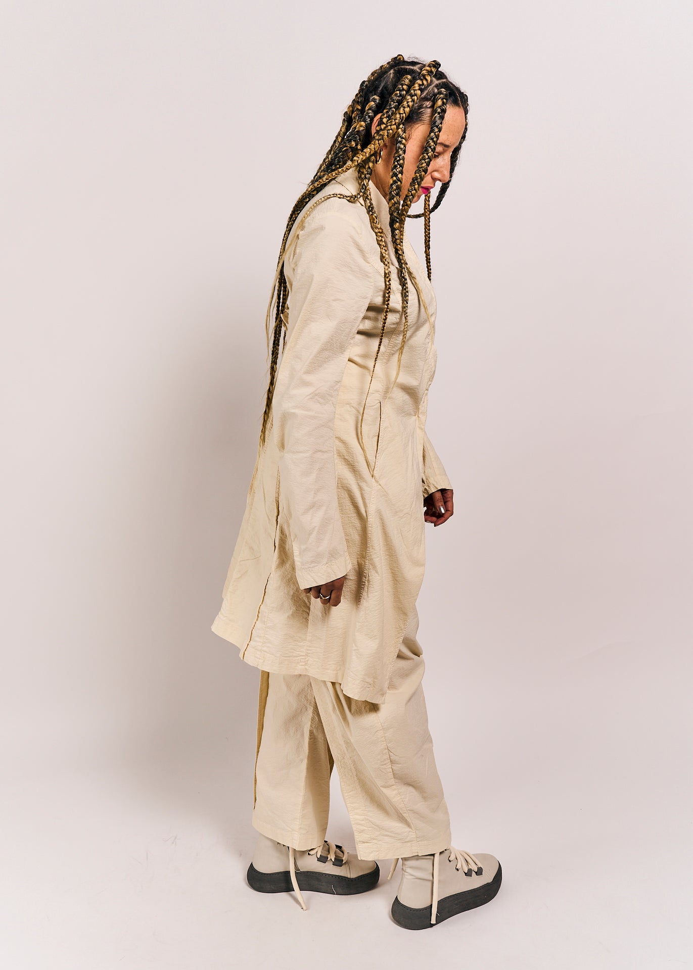 Get ready to rock in the Rundholz DIP Coat Greige! This jaquet-style coat features a tight, flattering fit and a unique flat collar. Stay stylish and functional with a button closure and front pocket. Bundle up with this buttoned beauty!