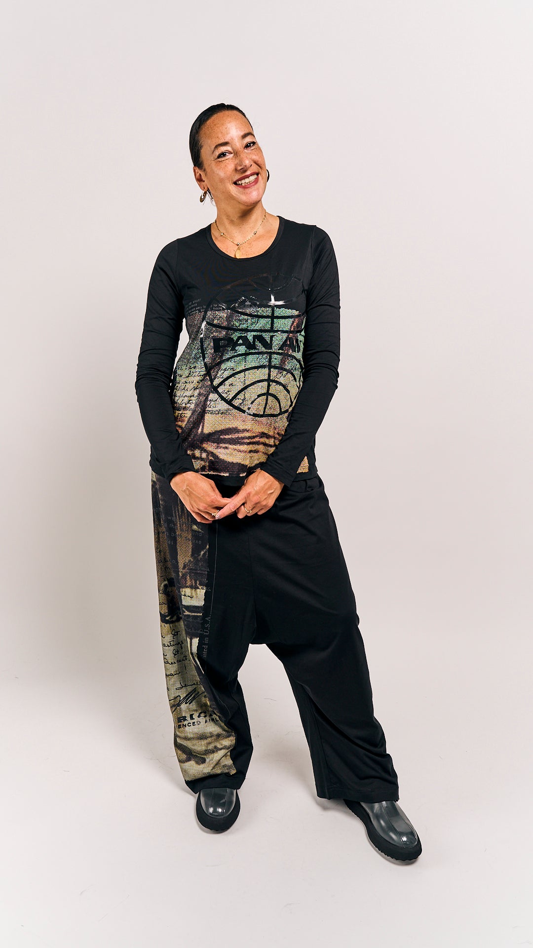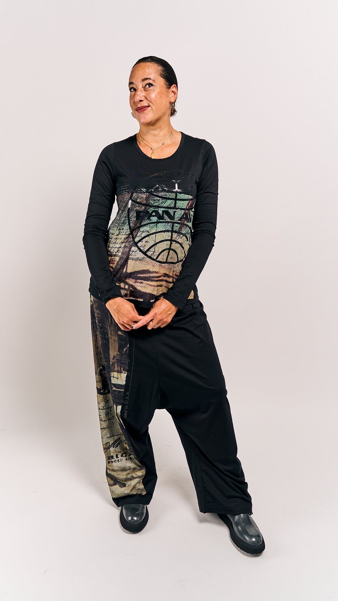 These low crotch trousers from Rundholz DIP bring a playful vibe with their vibrant Waikiki sand print. Made from soft cotton, they offer comfort and a relaxed fit perfect for casual days. Add a splash of fun and effortless style to your wardrobe with these unique, eye-catching pants.