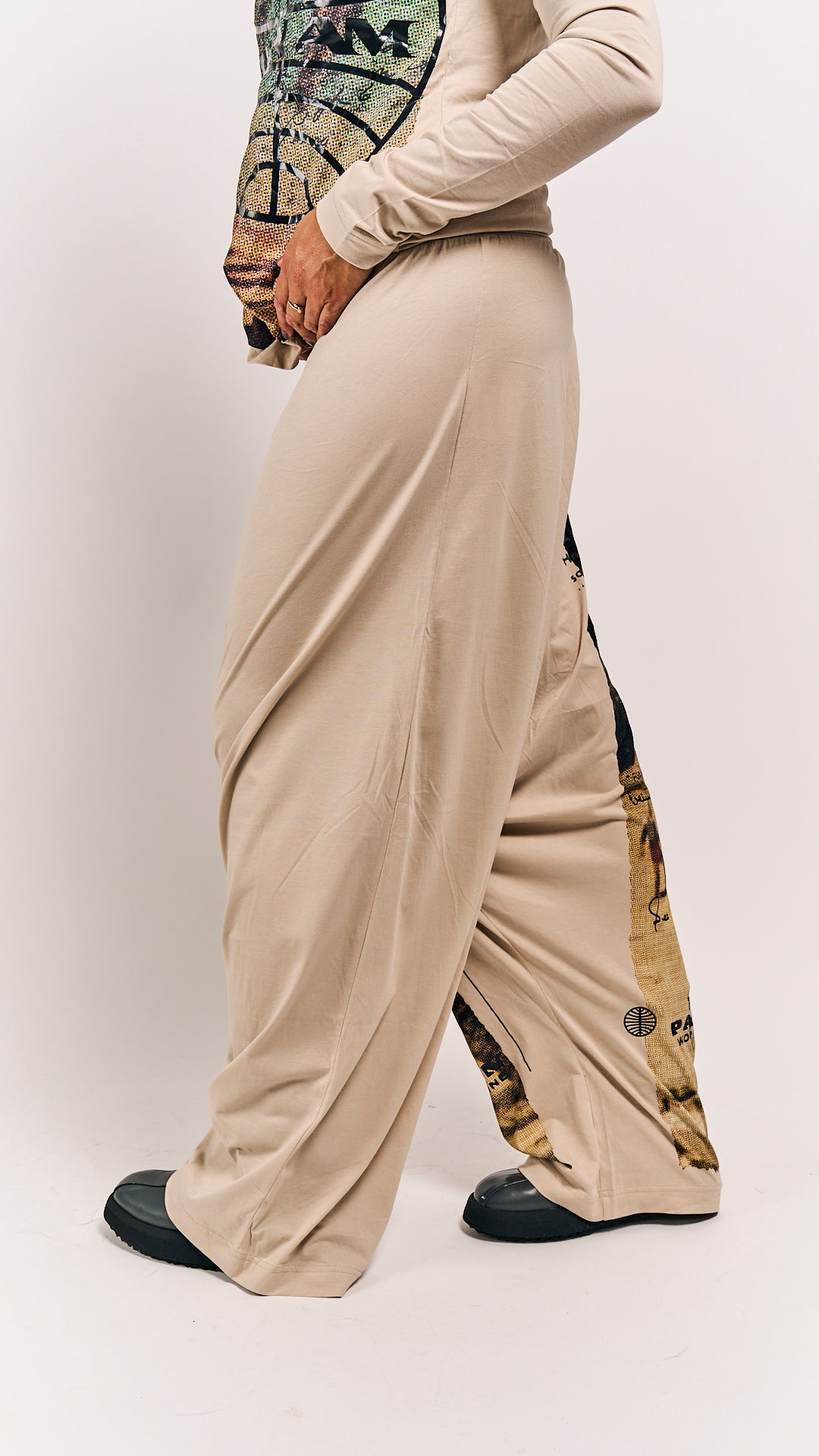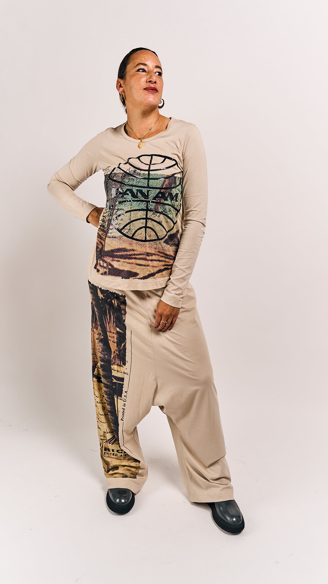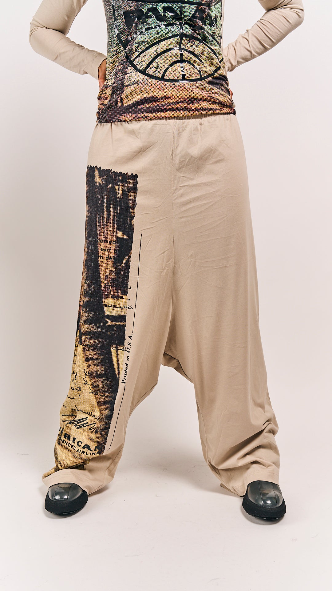 These low crotch trousers from Rundholz DIP bring a playful vibe with their vibrant Waikiki sand print. Made from soft cotton, they offer comfort and a relaxed fit perfect for casual days. Add a splash of fun and effortless style to your wardrobe with these unique, eye-catching pants.