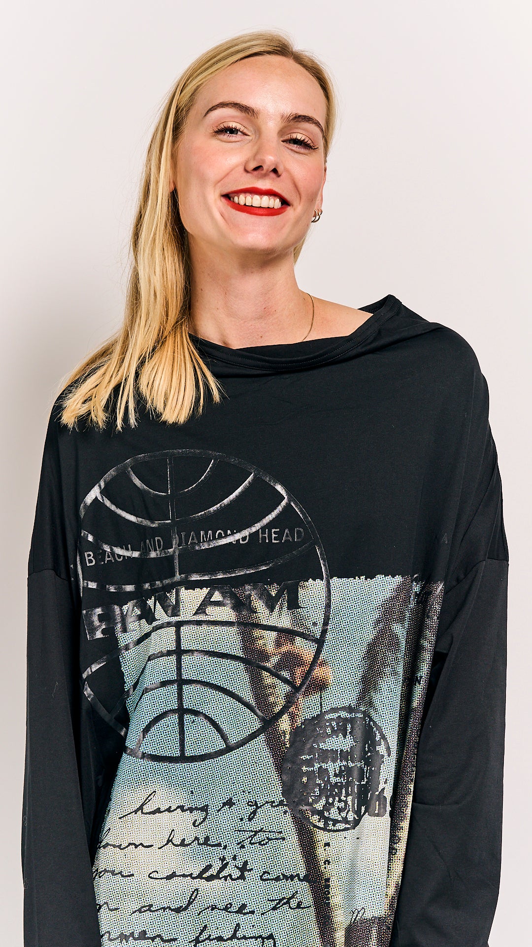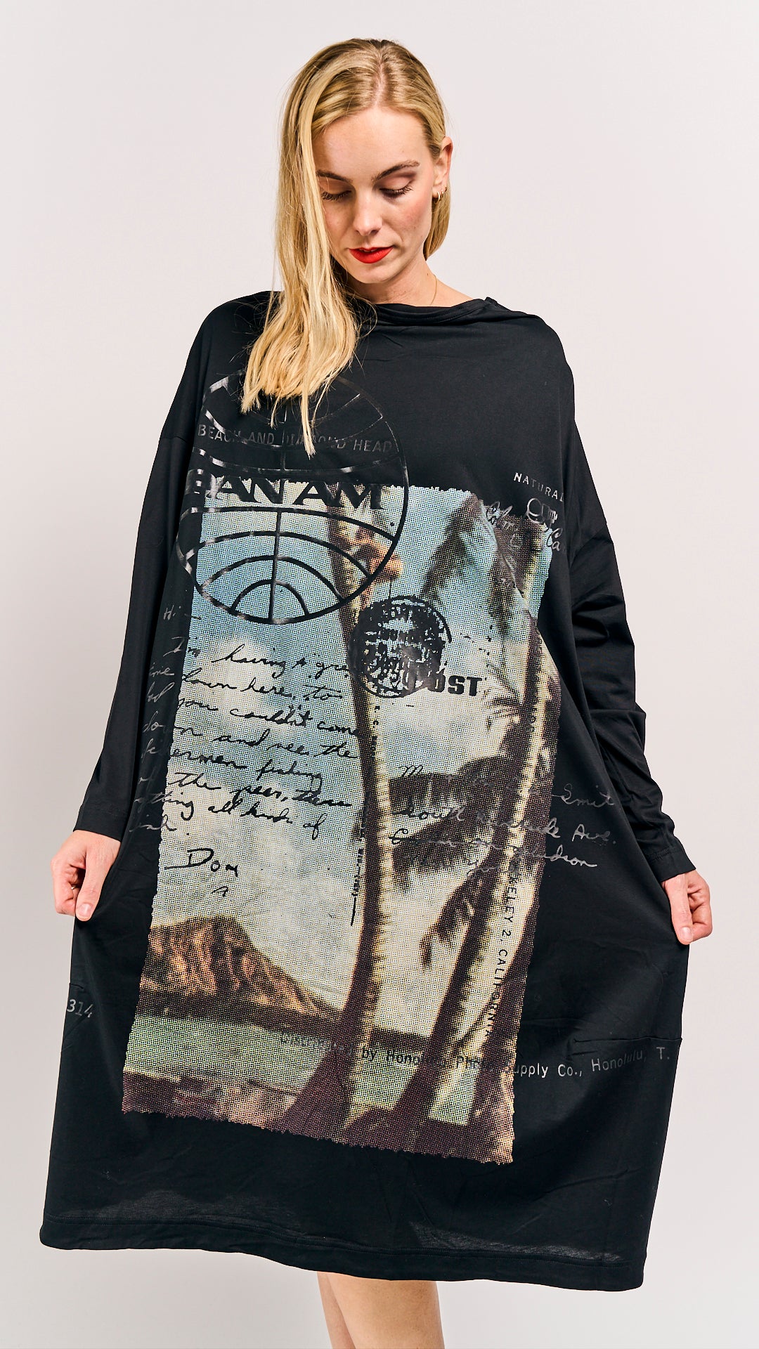 Cozy up this winter in our oversized cotton dress featuring a cheerful Waikiki print on the front. Designed for comfort, its roomy fit lets you layer up while keeping a playful, tropical vibe all season long. Perfect for brightening chilly days with a splash of fun.