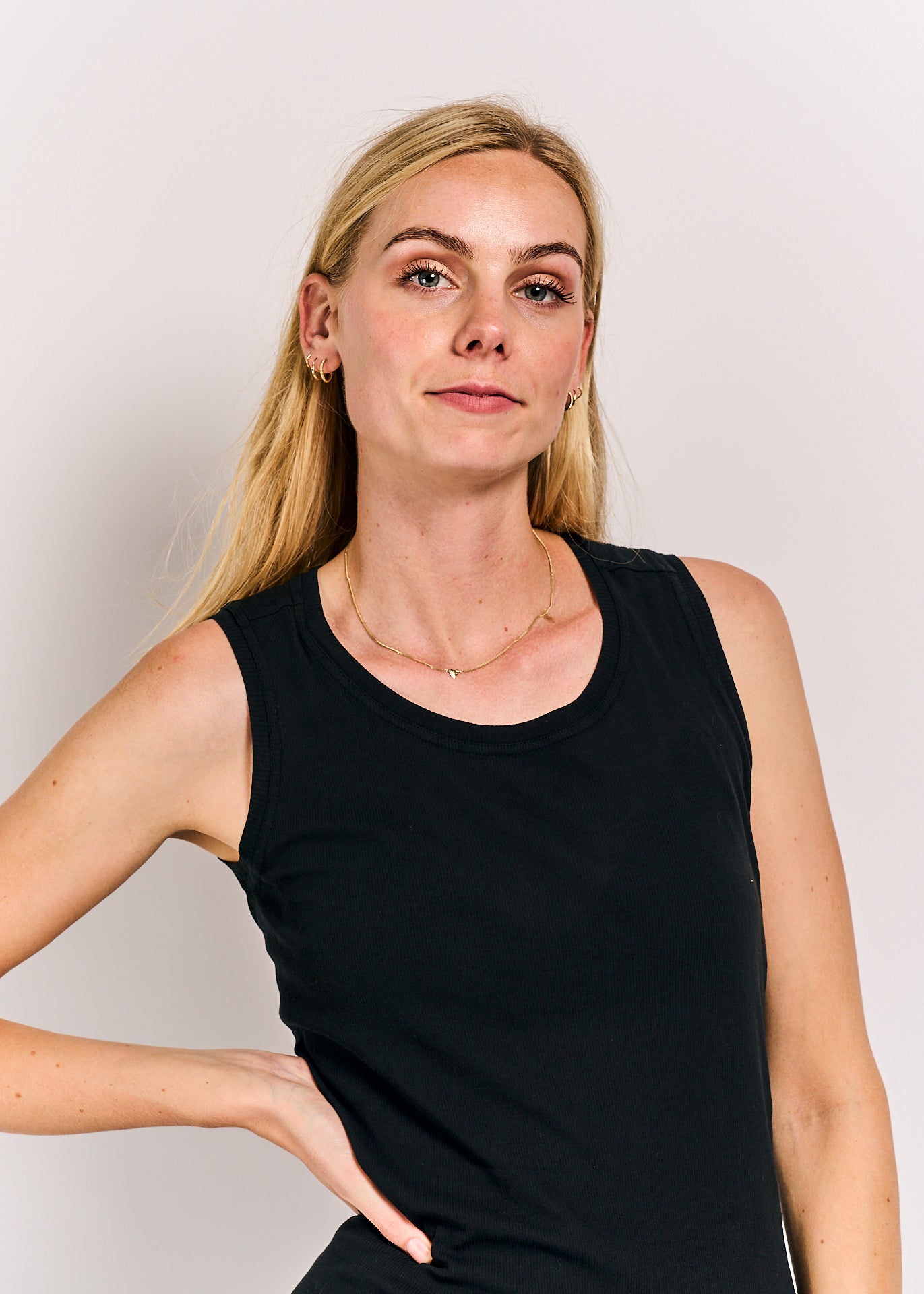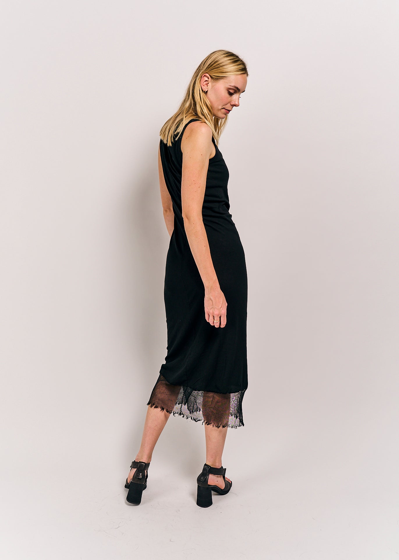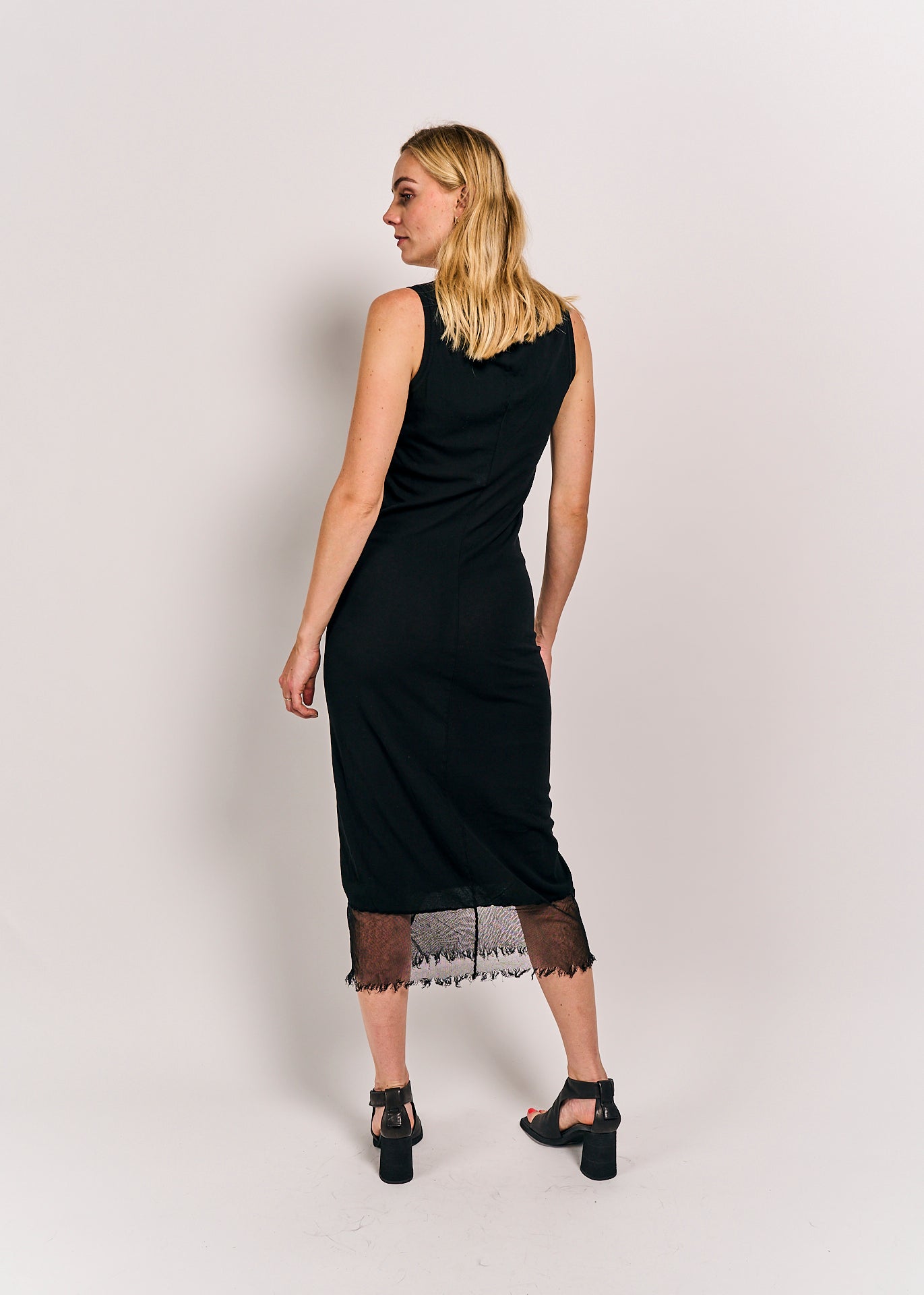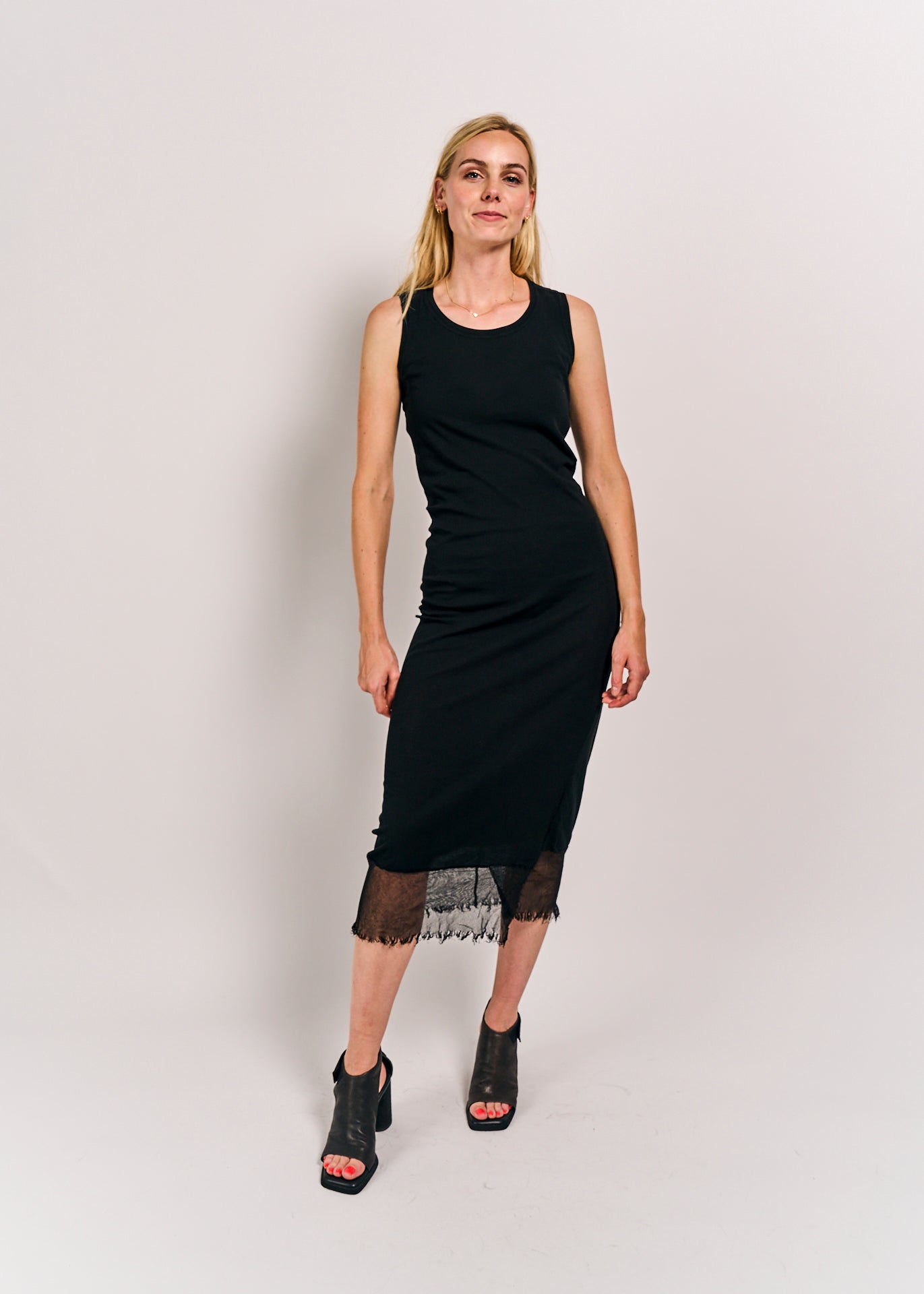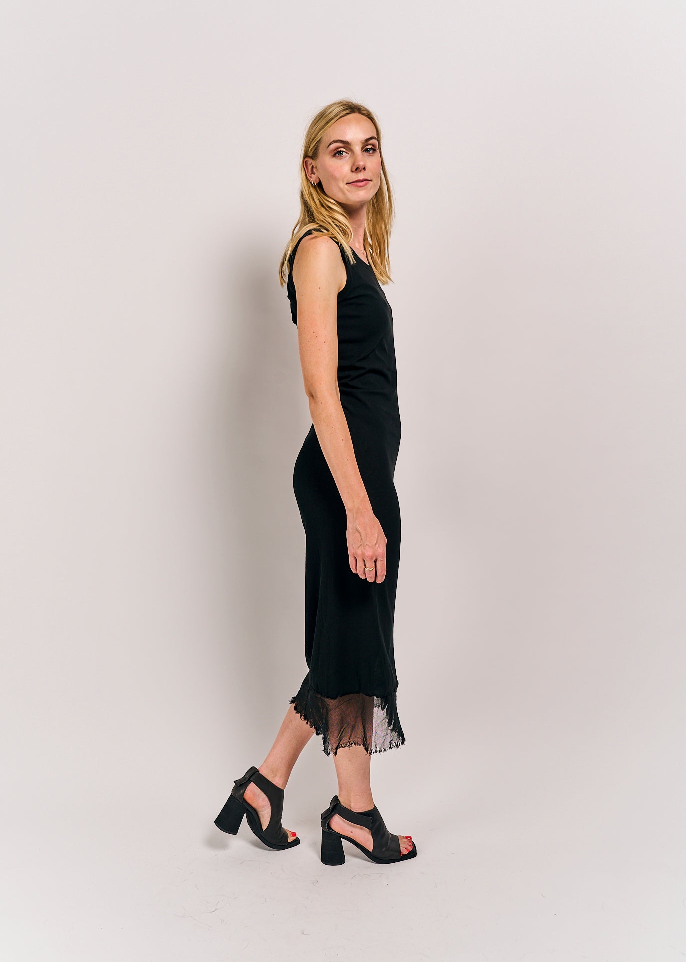 The Black dress by Rundholz DIP is a playful, sleeveless long dress made from 100% soft cotton for all-day comfort. Its airy mesh detail at the bottom adds a fun, flirty twist.