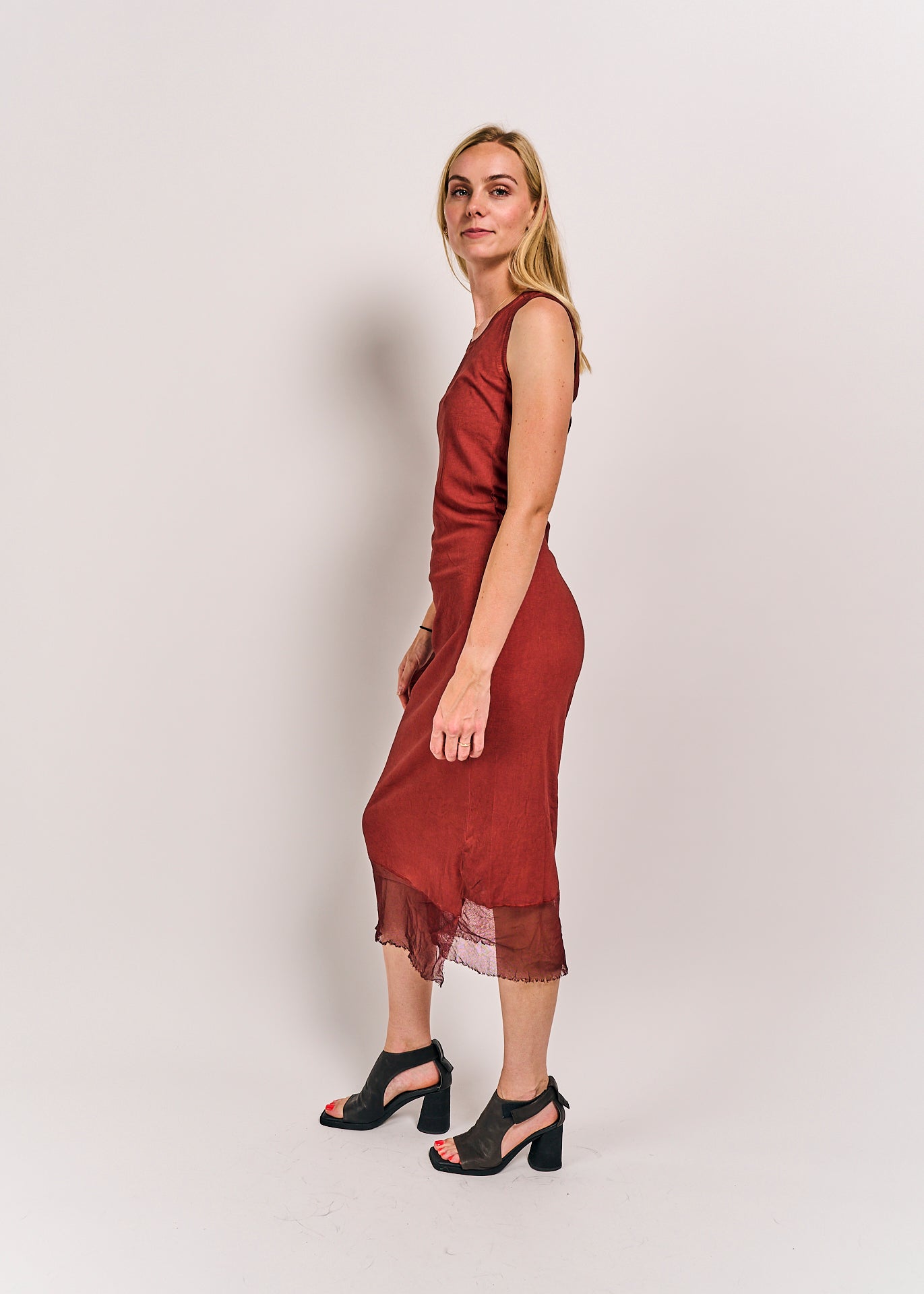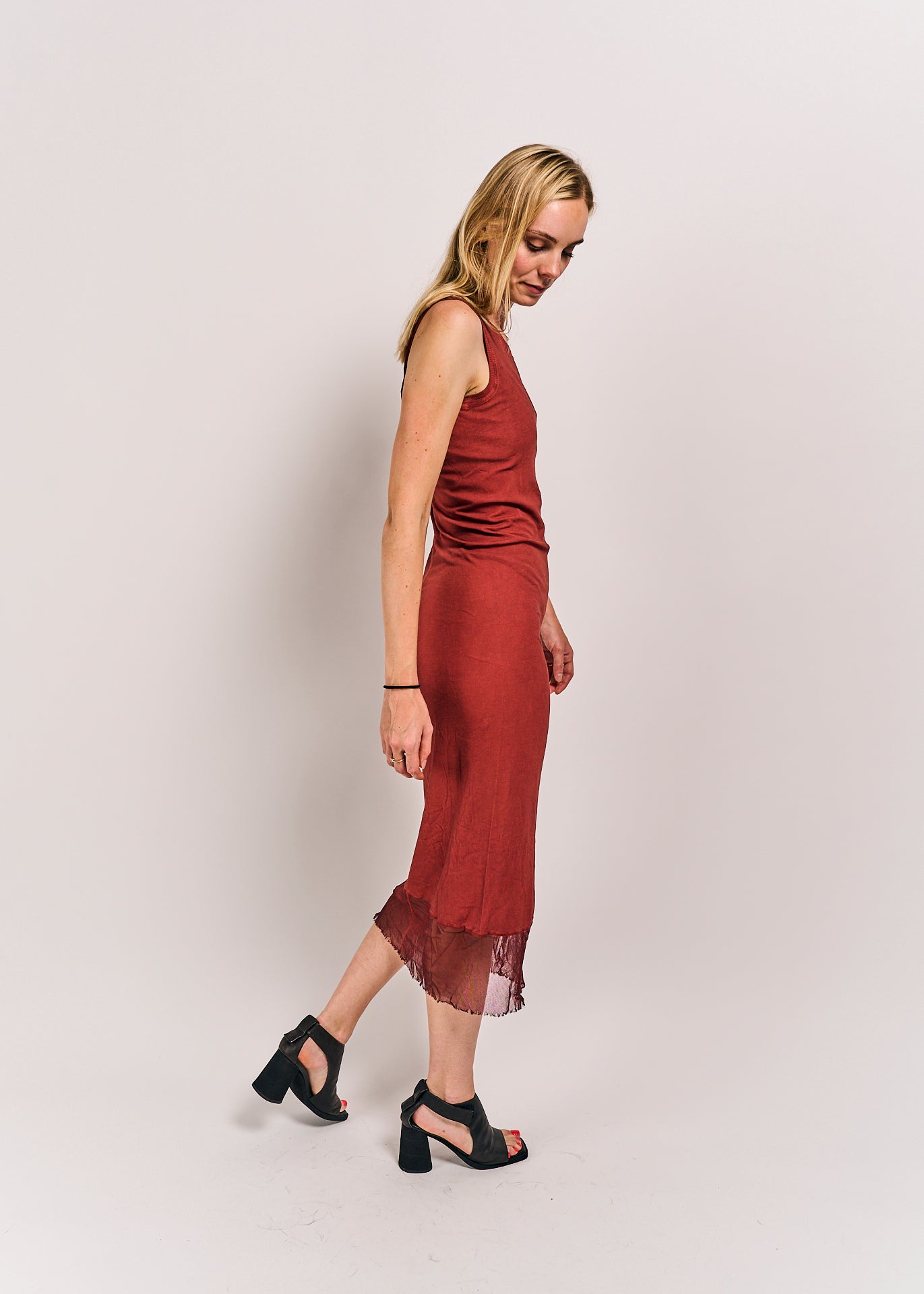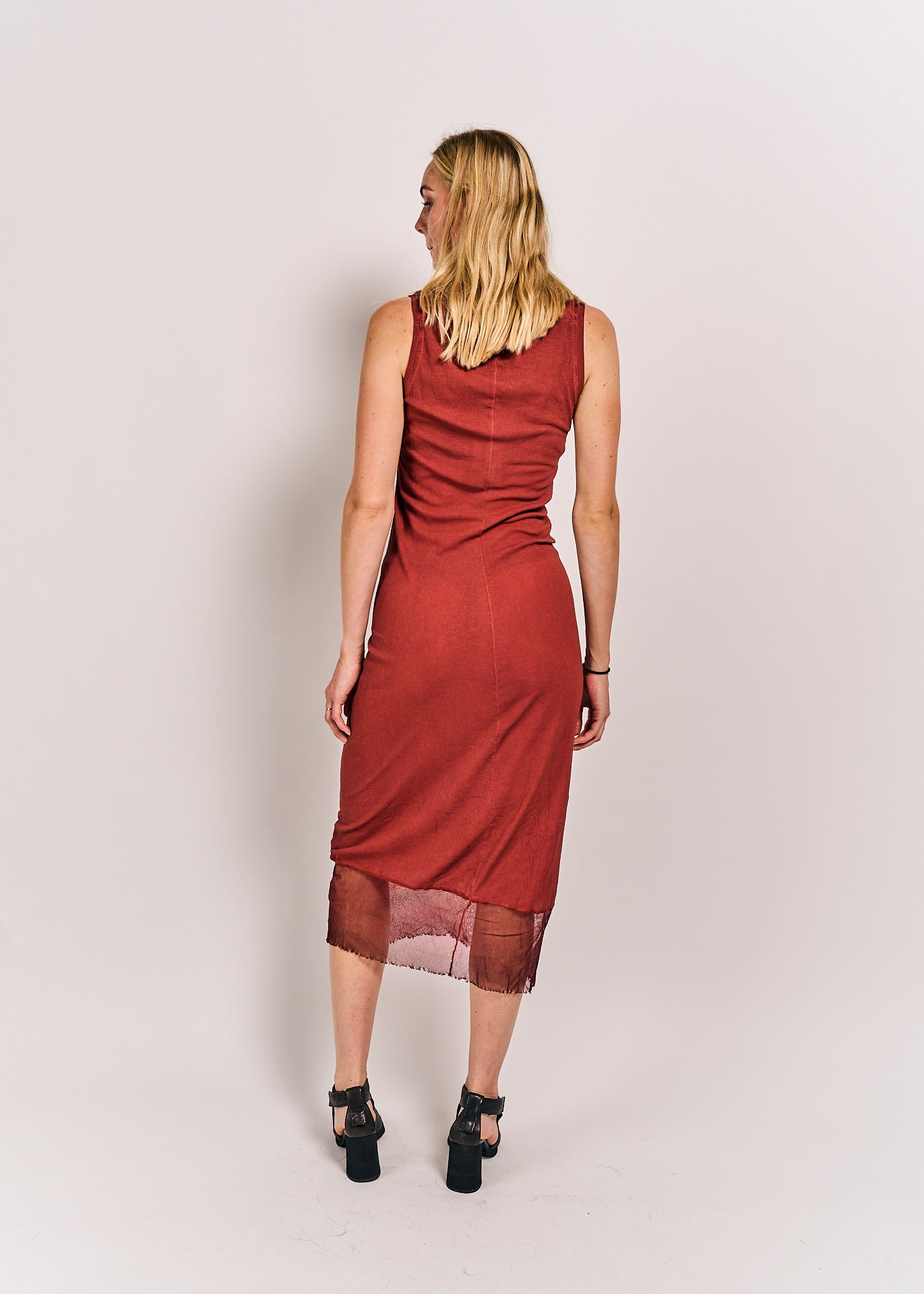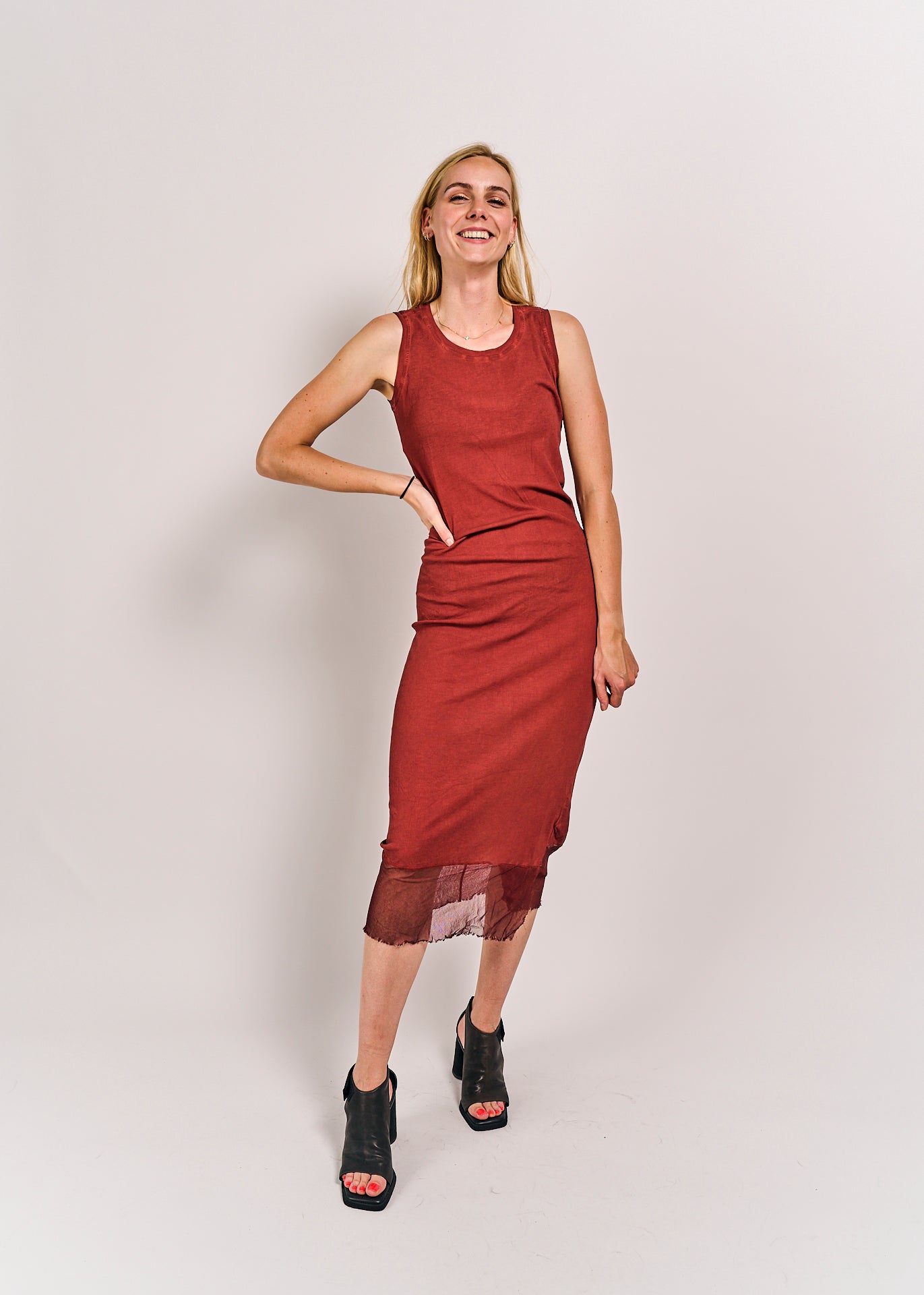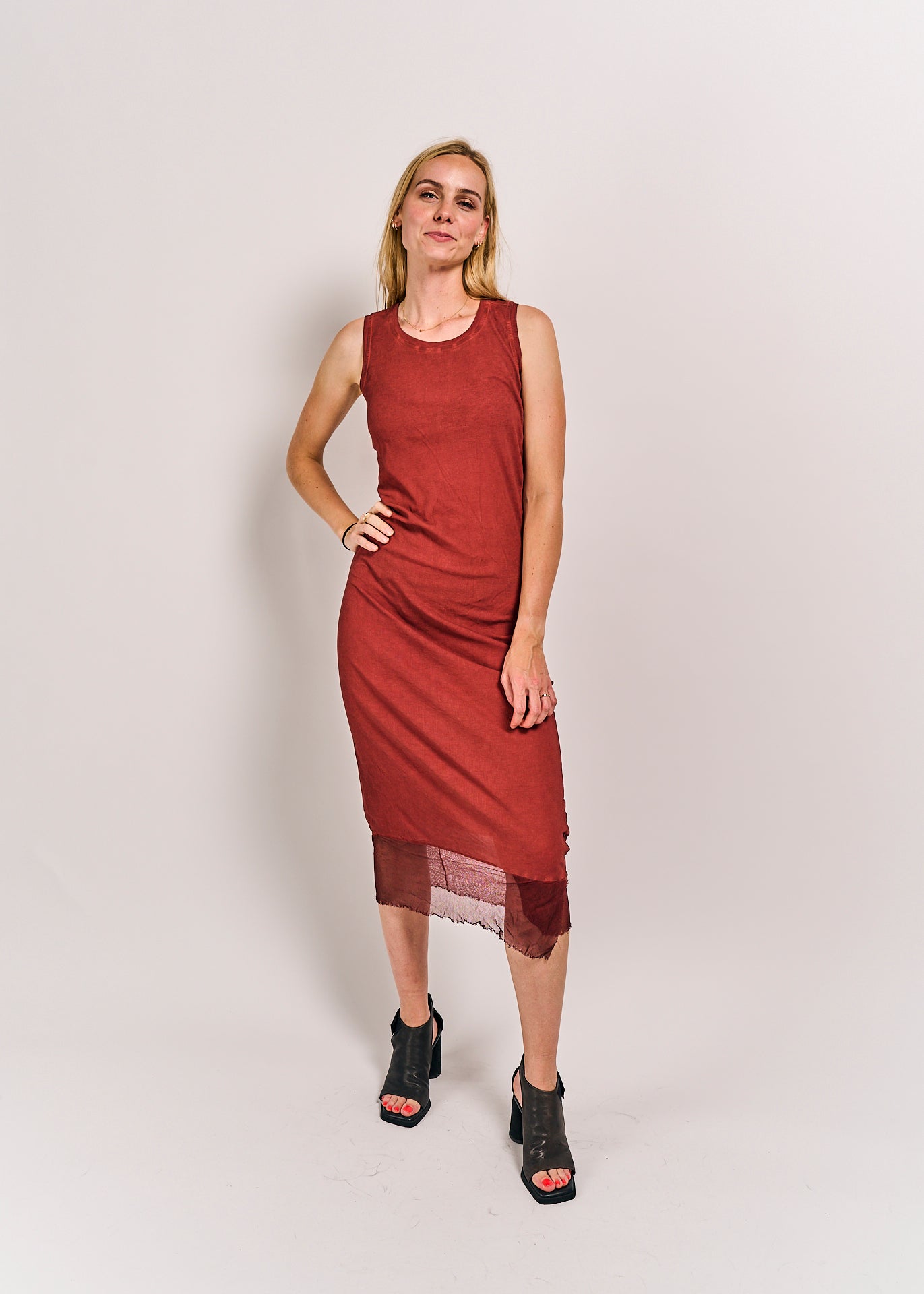 The Crab Cloud dress by Rundholz DIP is a playful, sleeveless long dress made from 100% soft cotton for all-day comfort. Its airy mesh detail at the bottom adds a fun, flirty twist.