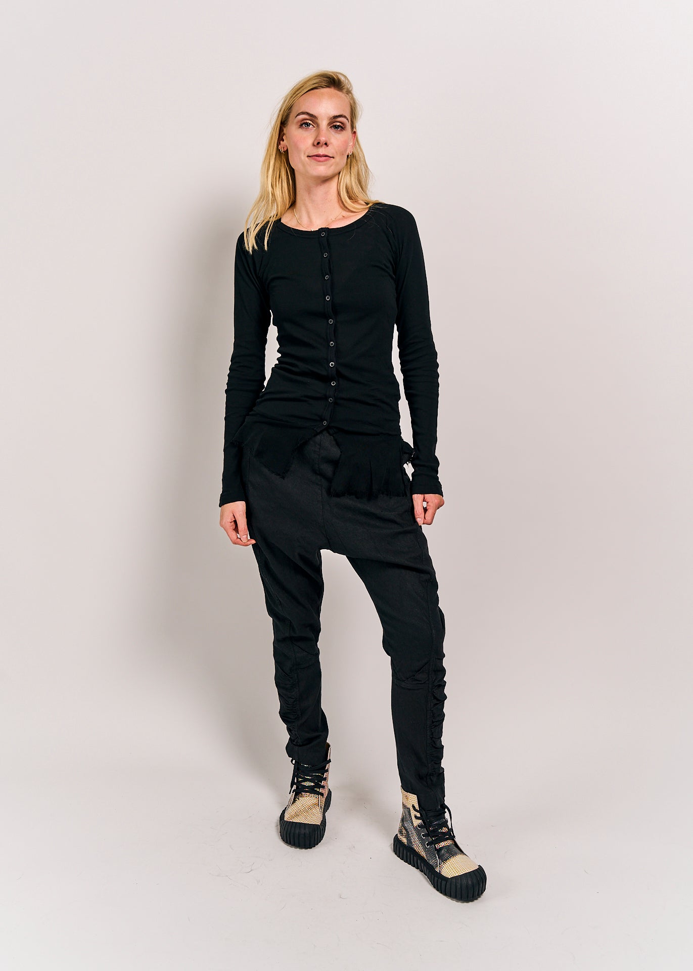 This playful cardigan from Rundholz Dip is crafted from 100% soft cotton for all-day comfort. Its unique design features a delicate mesh detail at the bottom, adding a fun and airy twist to your outfit. Perfect for layering with a touch of whimsy!