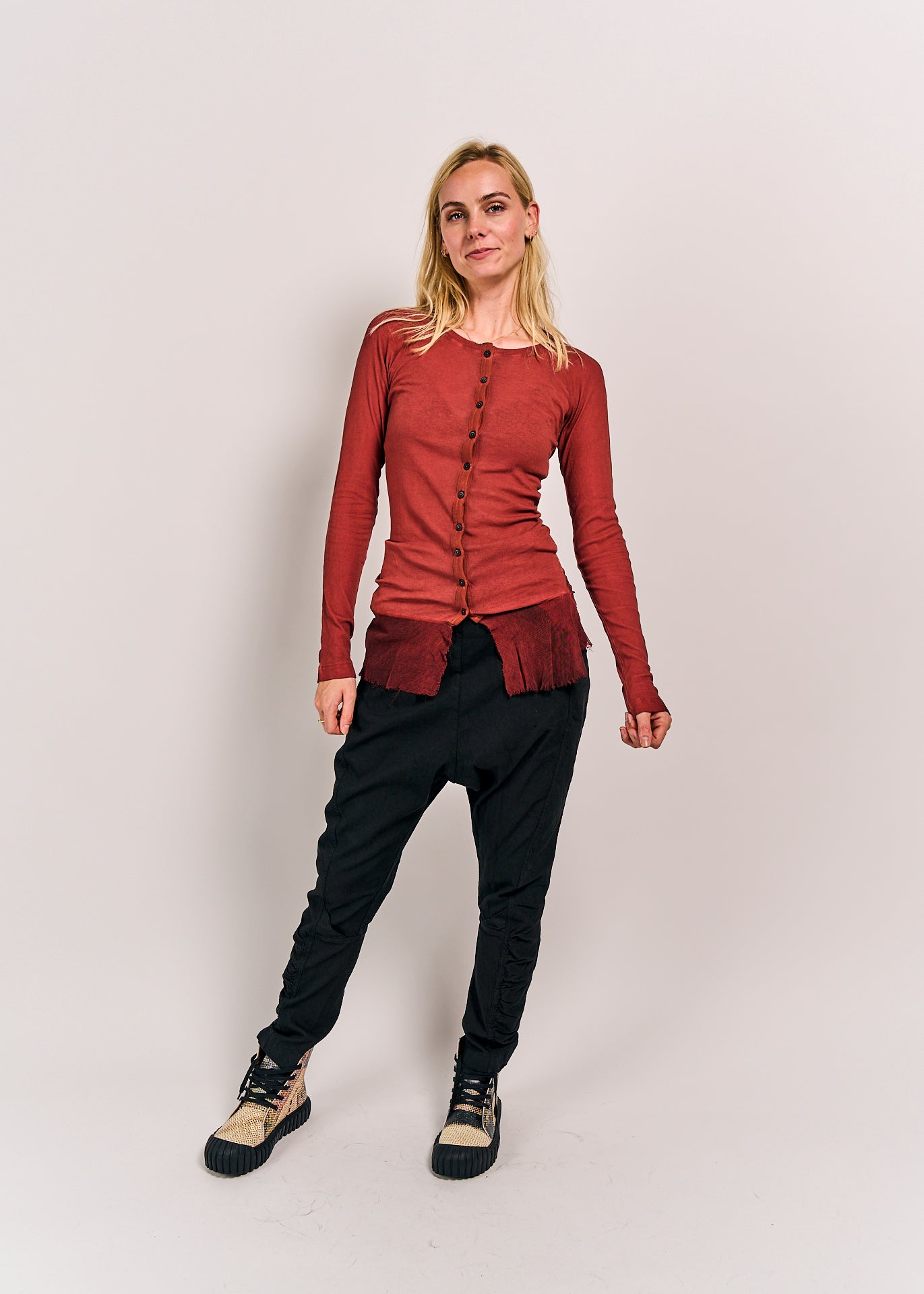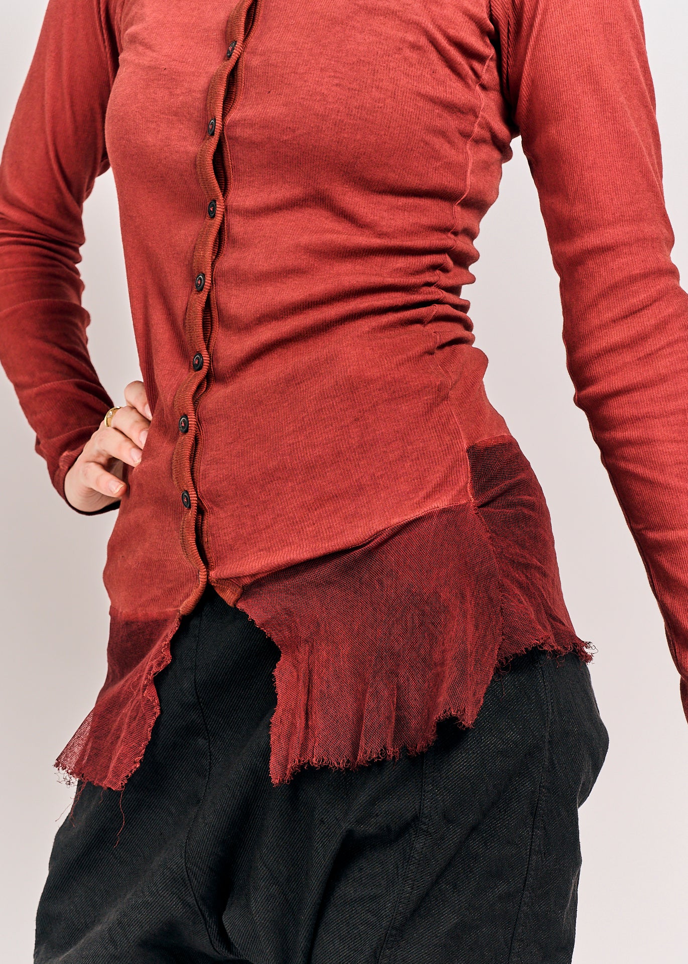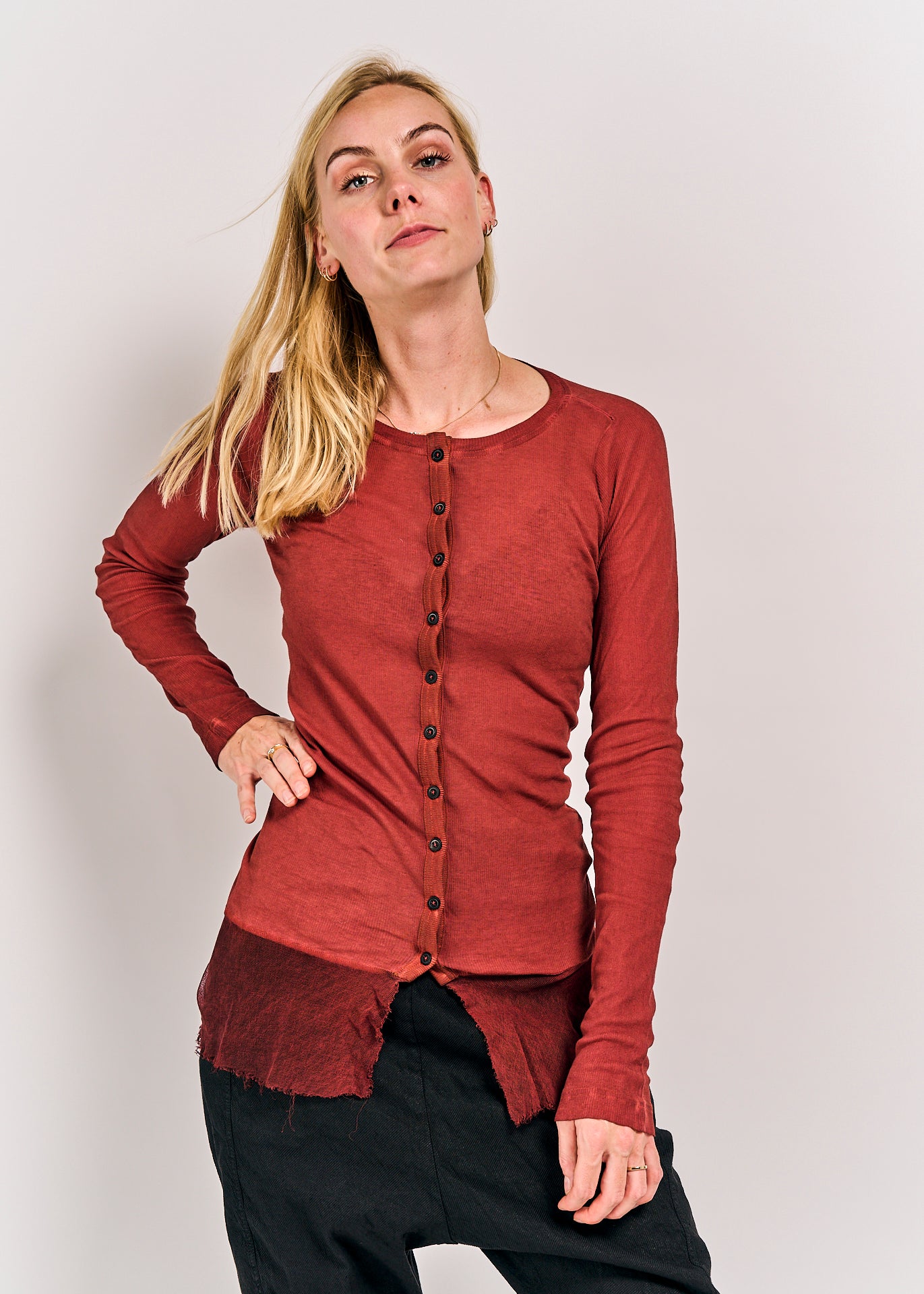 This playful cardigan from Rundholz Dip is crafted from 100% soft cotton for all-day comfort. Its unique design features a delicate mesh detail at the bottom, adding a fun and airy twist to your outfit. Perfect for layering with a touch of whimsy!