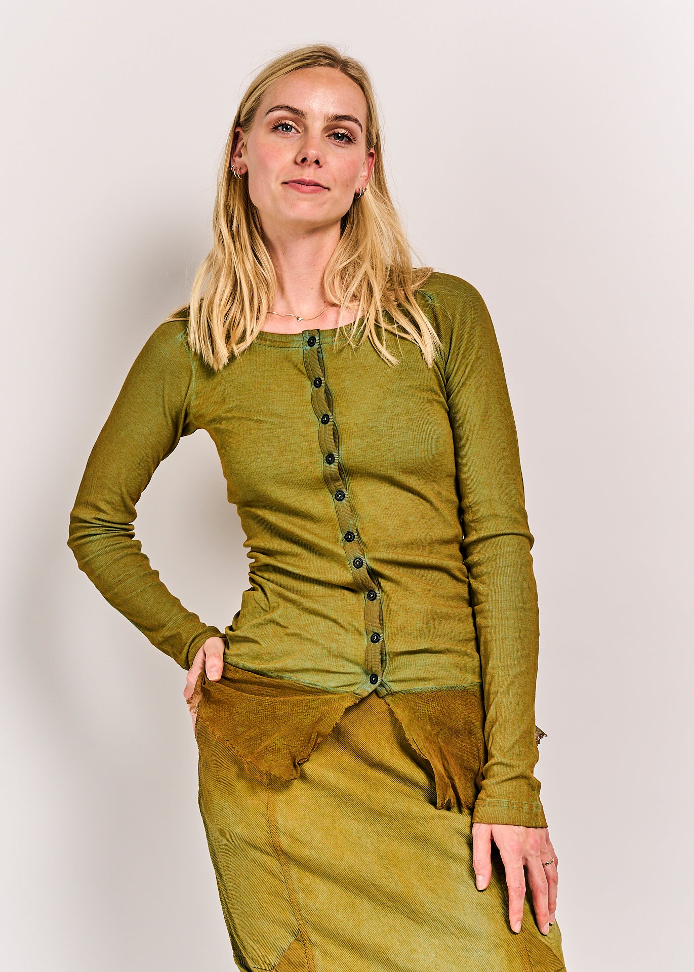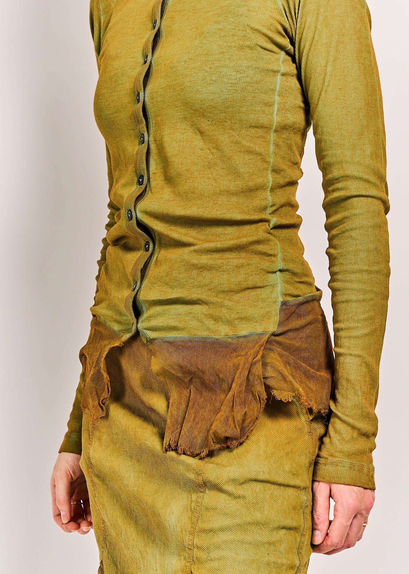This playful cardigan from Rundholz Dip is crafted from 100% soft cotton for all-day comfort. Its unique design features a delicate mesh detail at the bottom, adding a fun and airy twist to your outfit. Perfect for layering with a touch of whimsy!