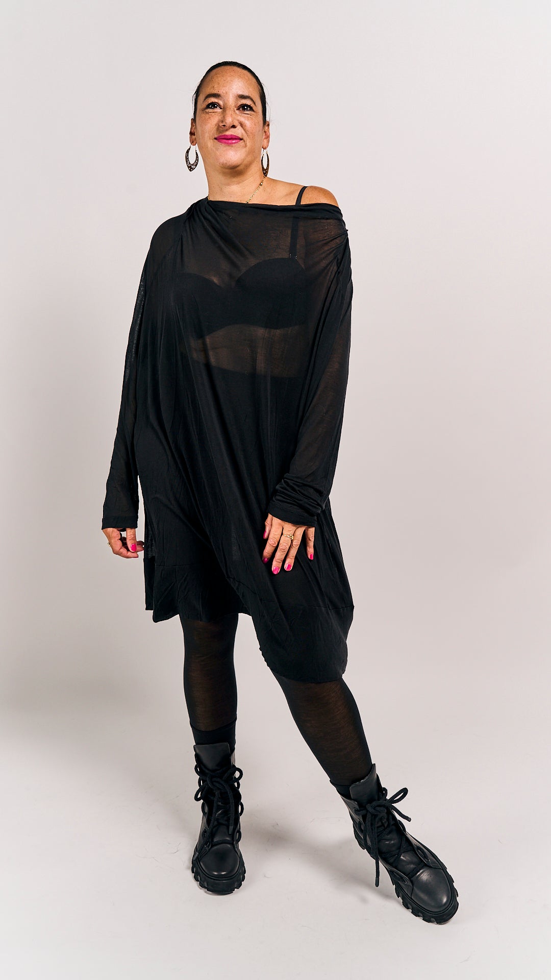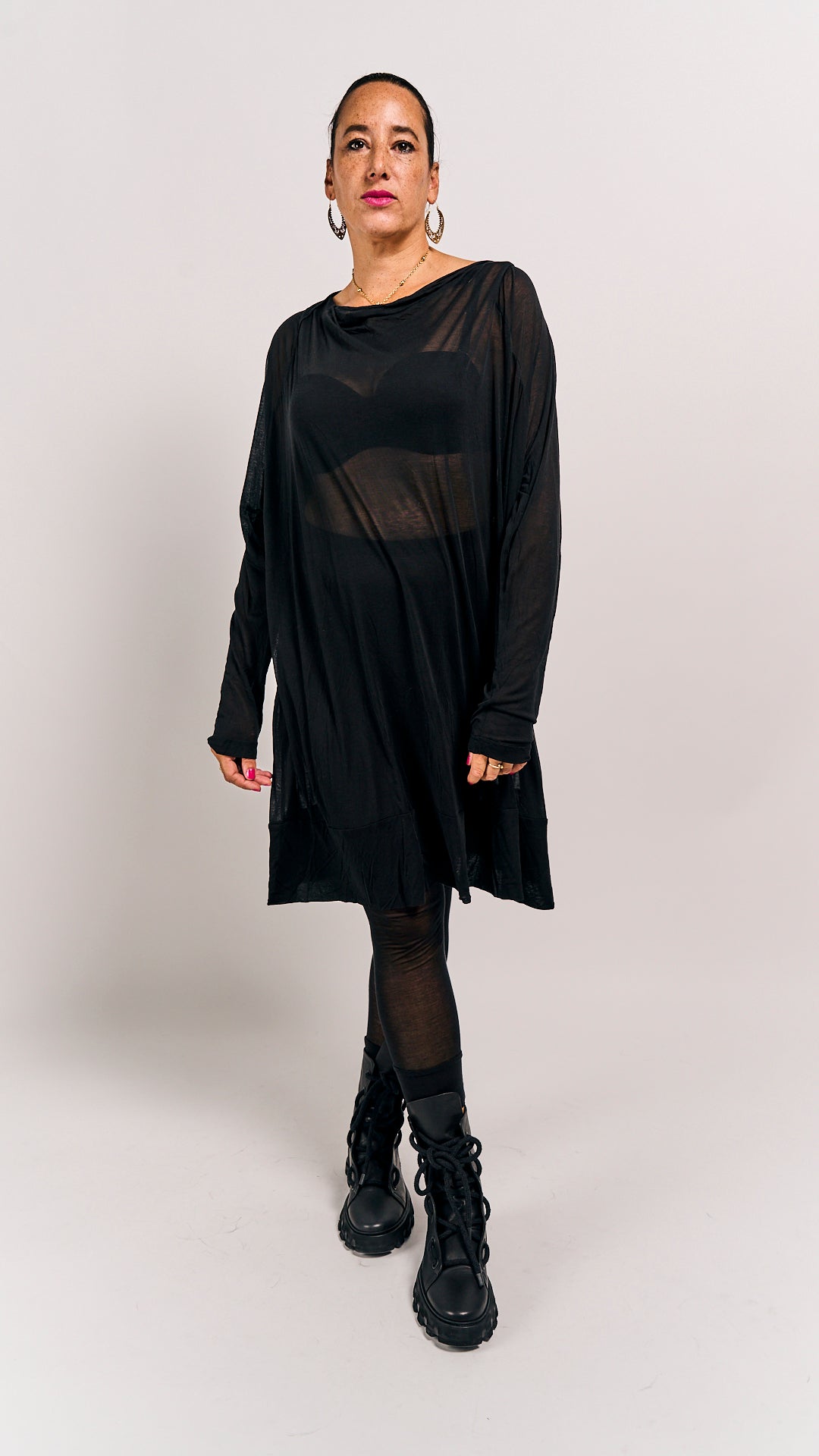 This black transparent dress from Rundholz DIP’s Winter 2025 collection features a slightly oversized fit that combines comfort with effortless style. Its classic black hue makes it a versatile piece perfect for layering or wearing solo, adding a chic edge to your winter wardrobe.