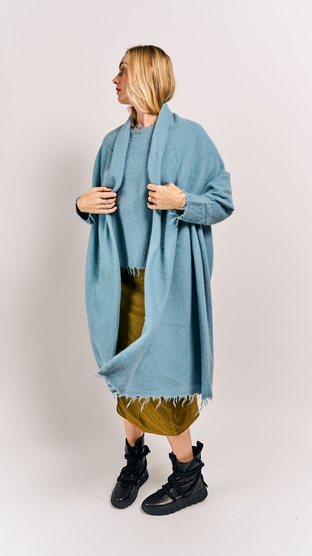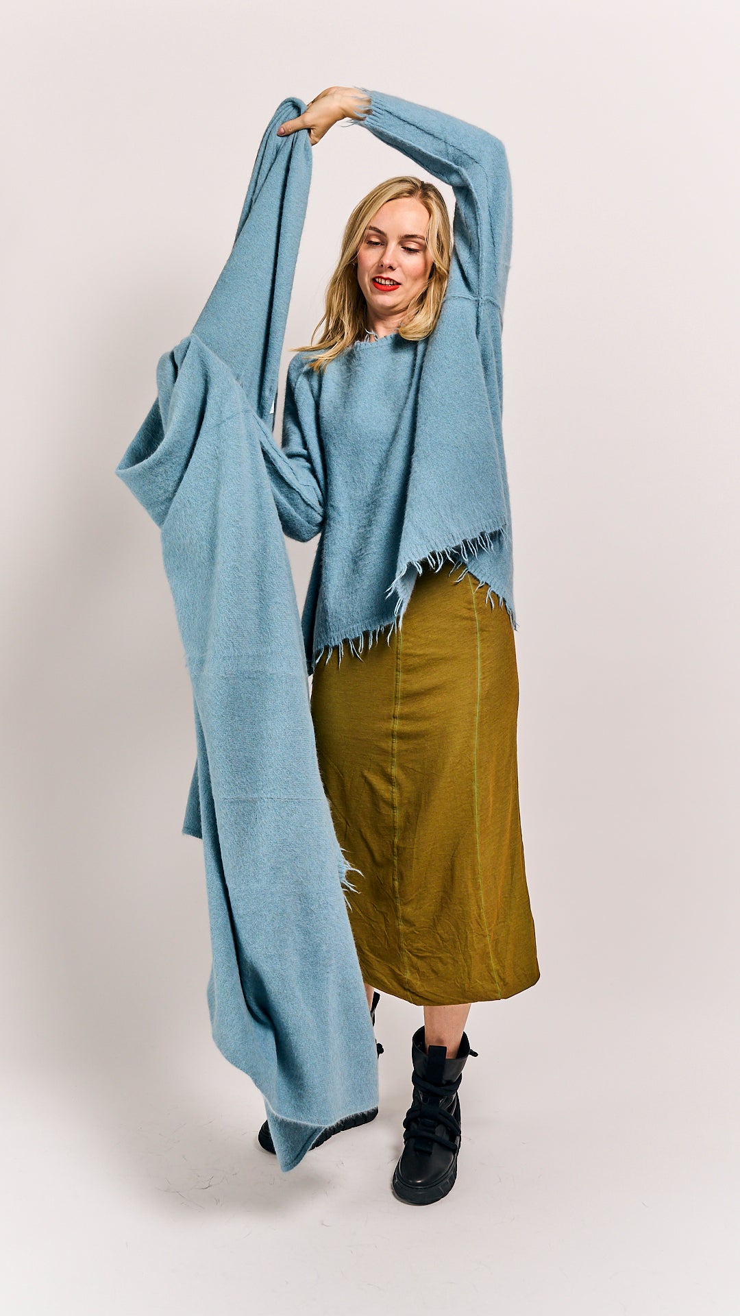 Wrap yourself in playful l uxury with the Lagoon shawl from Rundholz DIP. Crafted from a sumptuous blend of fox—a new, lavish fabric akin to raccoon—and smooth silk, this winter accessory offers warmth with a touch of whimsy. Perfect for adding a cozy yet chic flair to your cold-weather wardrobe.