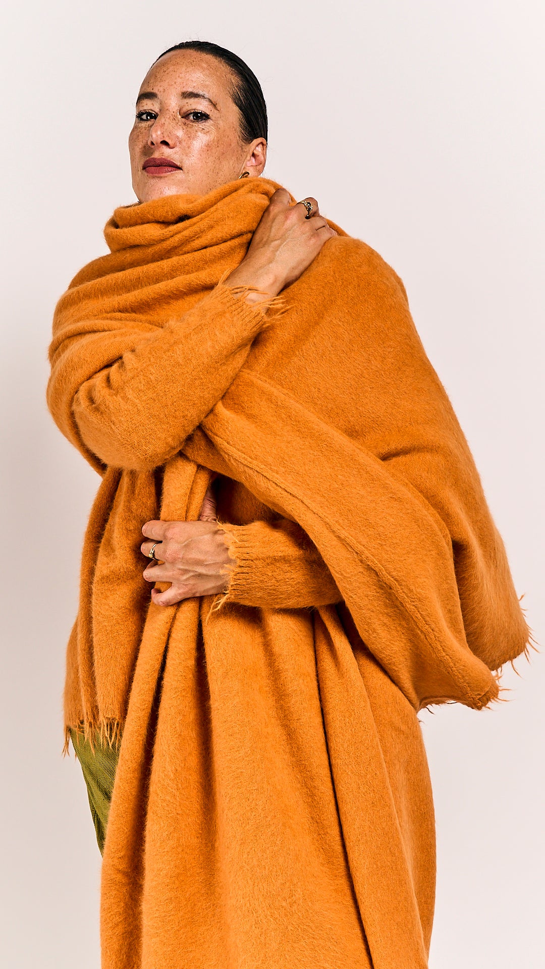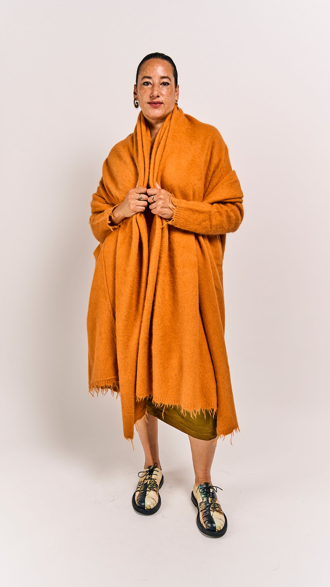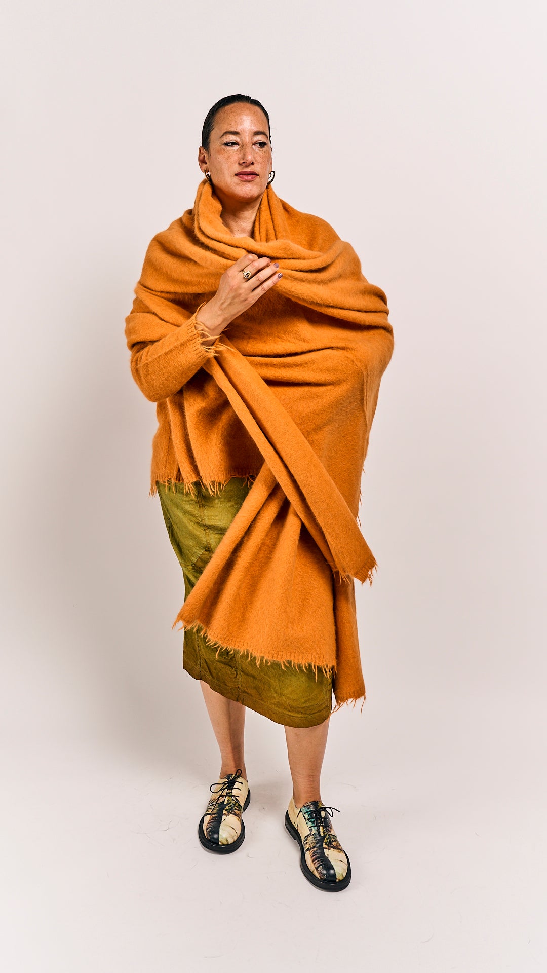 Discover the playful charm of the Sun shawl by Rundholz DIP, crafted from luxurious fox fabric and silk. Fox, the new luxury fabric from Rundholz, offers a soft, plush feel similar to raccoon fur, bringing a fresh twist to cozy elegance. This big shawl wraps you in warmth and style, perfect for adding a fun, lavish touch to your wardrobe.