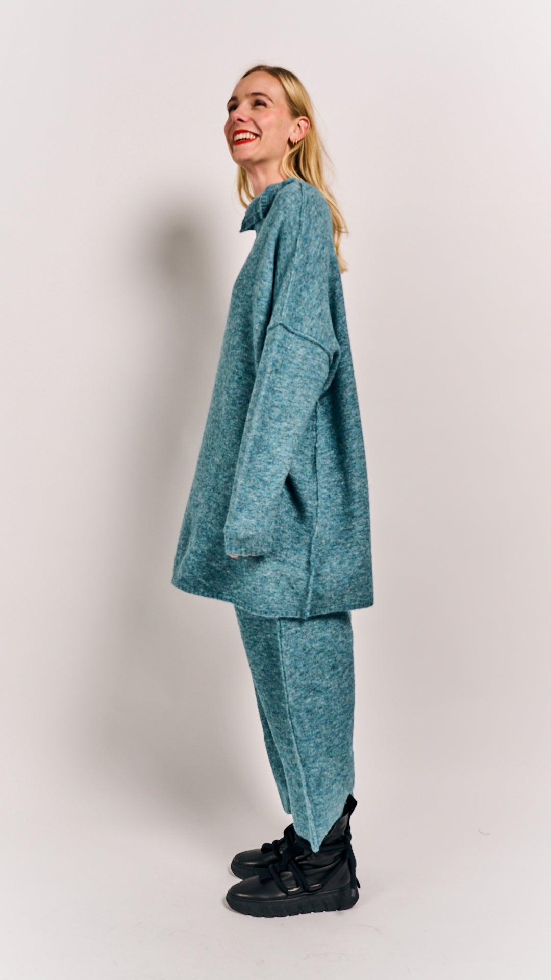 Embrace cozy luxury with the Lagoon Melange pullover from Rundholz DIP. This long, oversized fit piece wraps you in softness while adding a playful edge to your wardrobe. Perfect for lounging or layering, it combines comfort and style effortlessly.