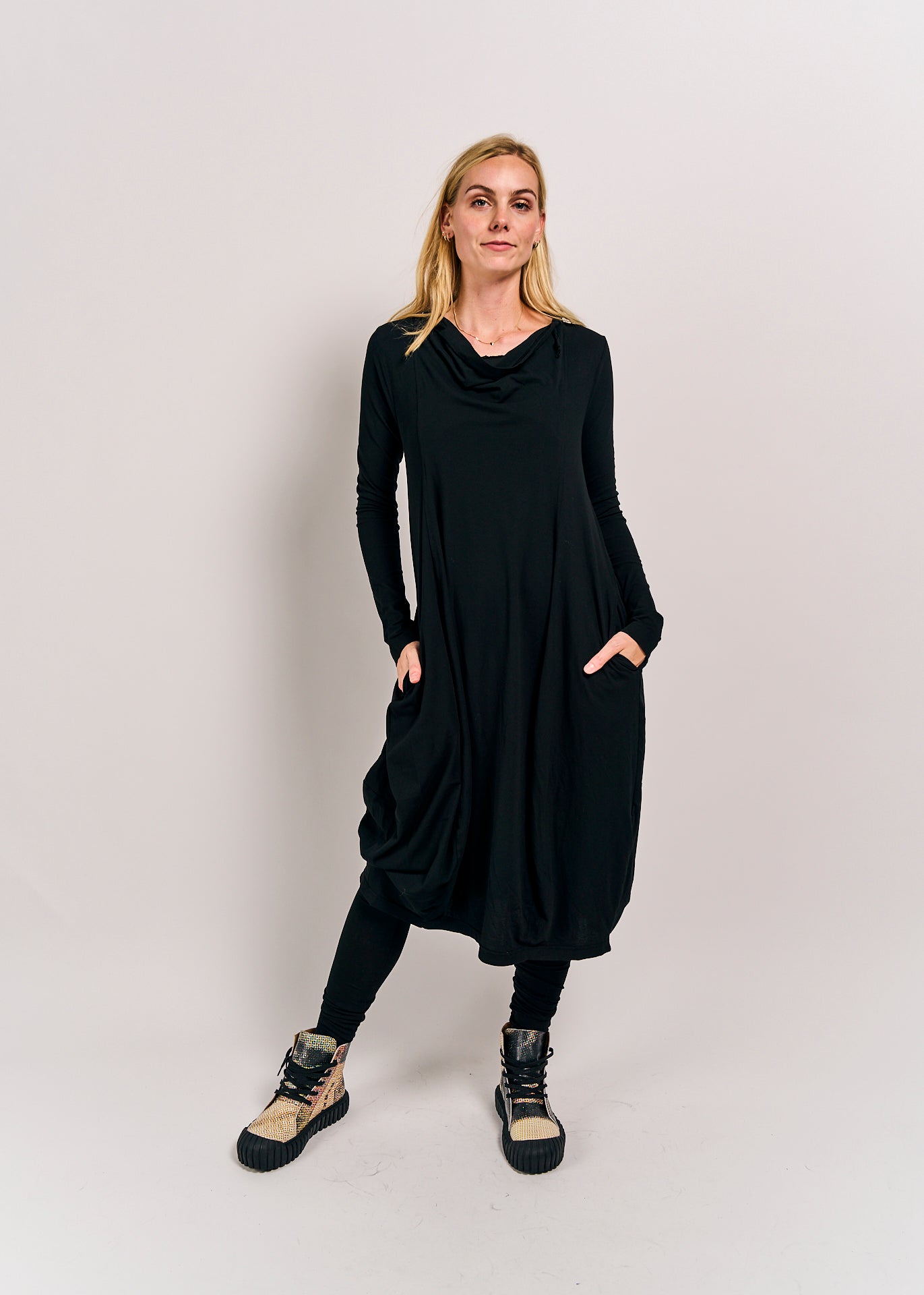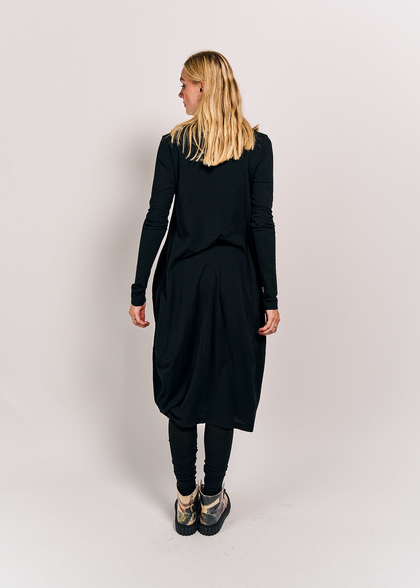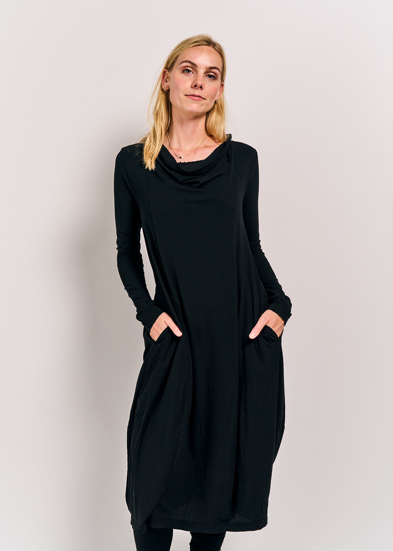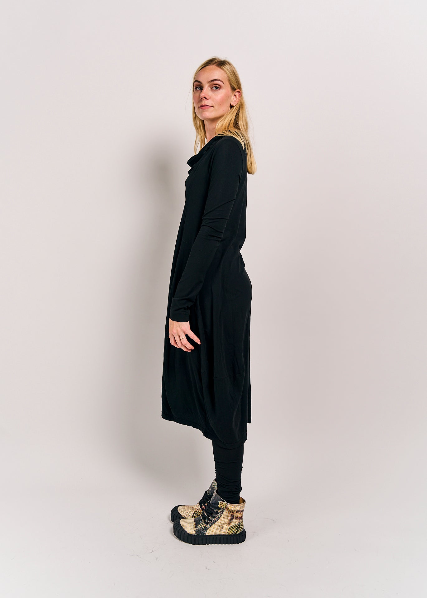 This dress combines comfort and style with its relaxed fit and soft cotton-elastin blend. Featuring long sleeves and a flattering silhouette, it’s perfect for effortless everyday wear. Embrace casual elegance with the unique touch of Rundholz DIP design.