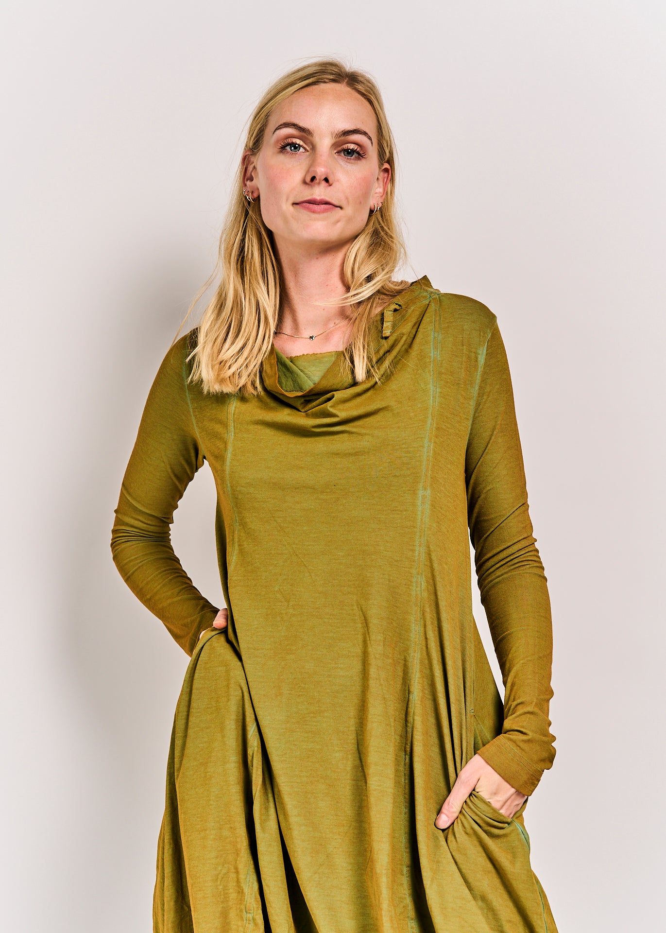 This dress combines comfort and style with its relaxed fit and soft cotton-elastin blend. Featuring long sleeves and a flattering silhouette, it’s perfect for effortless everyday wear. Embrace casual elegance with the unique touch of Rundholz DIP design.