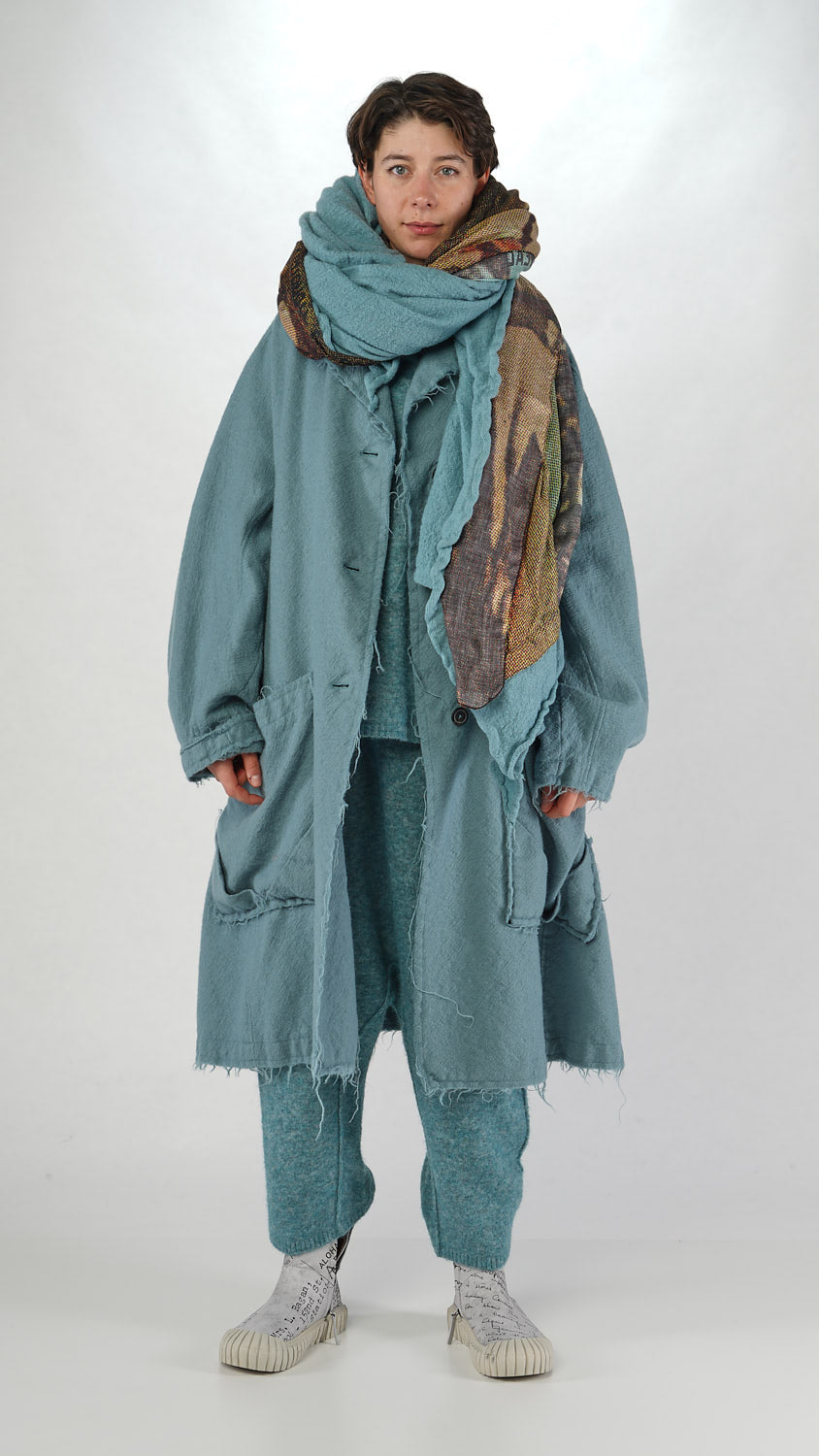 Wrap yourself in cozy elegance with this 100% wool shawl from Rundholz DIP. Featuring a vibrant lagoon color on one side and a playful print on the other, it adds a splash of fun and warmth to any outfit. Perfect for layering, this versatile shawl keeps you stylishly snug all day long.