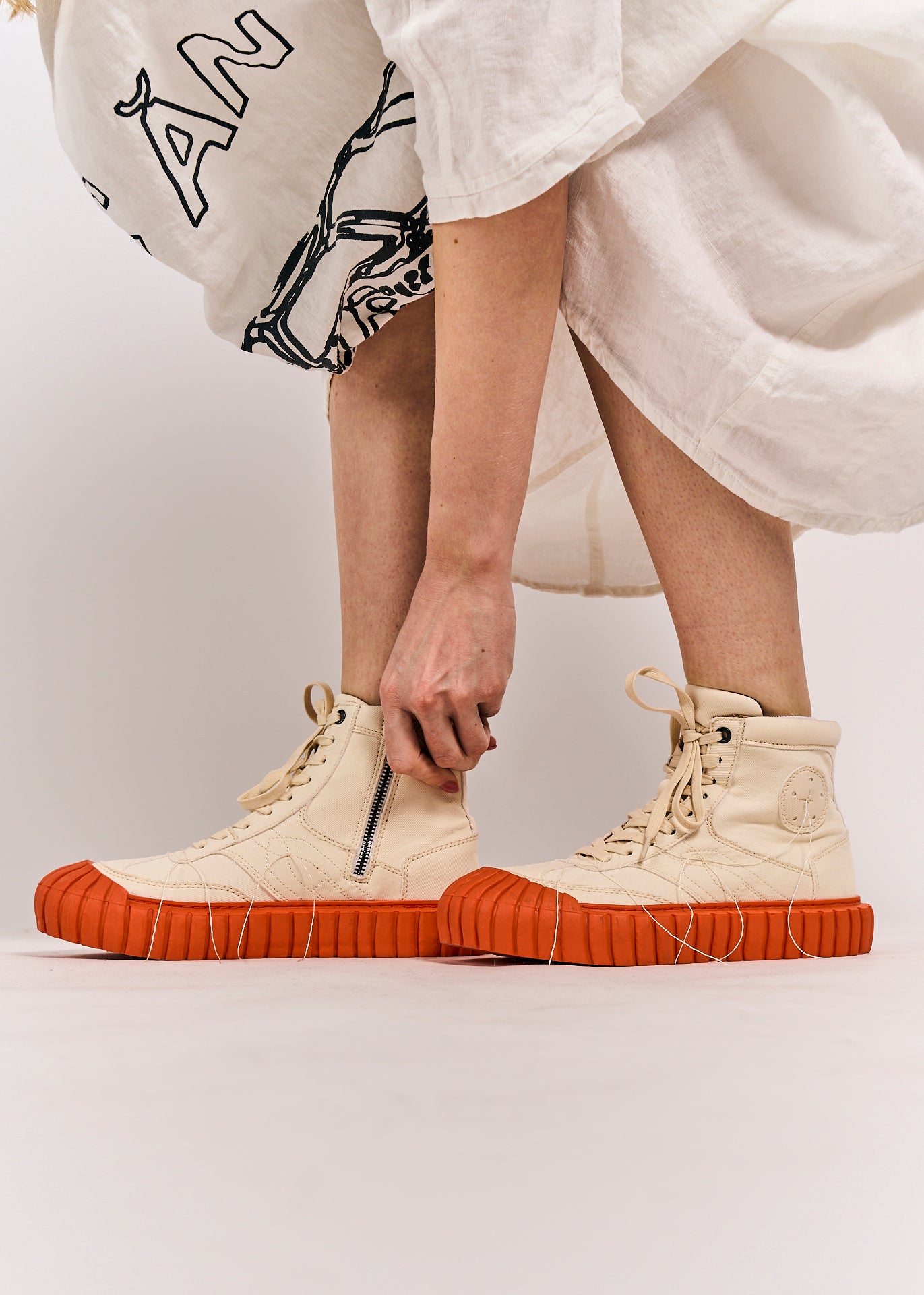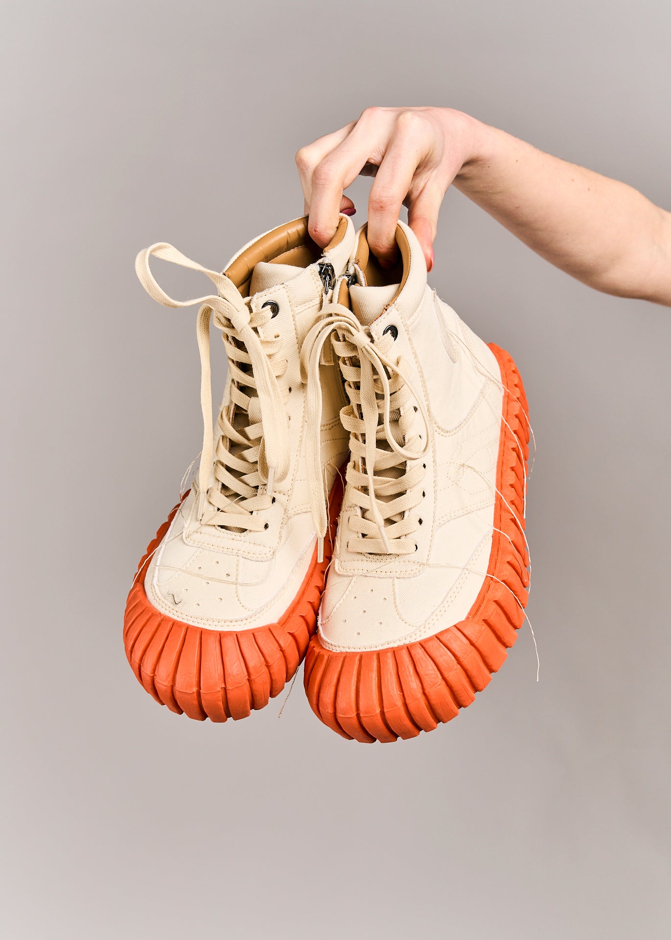 Hightop 'sneakers' from Rundholz Dip with laces in color Greige Mandarine. The shoes sizes have a normal fit
