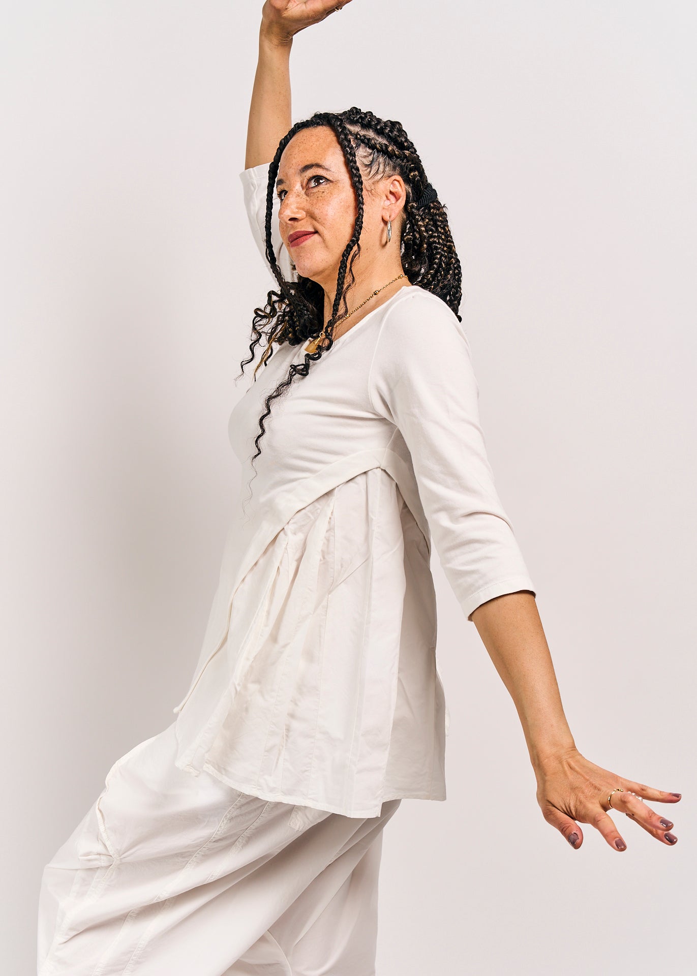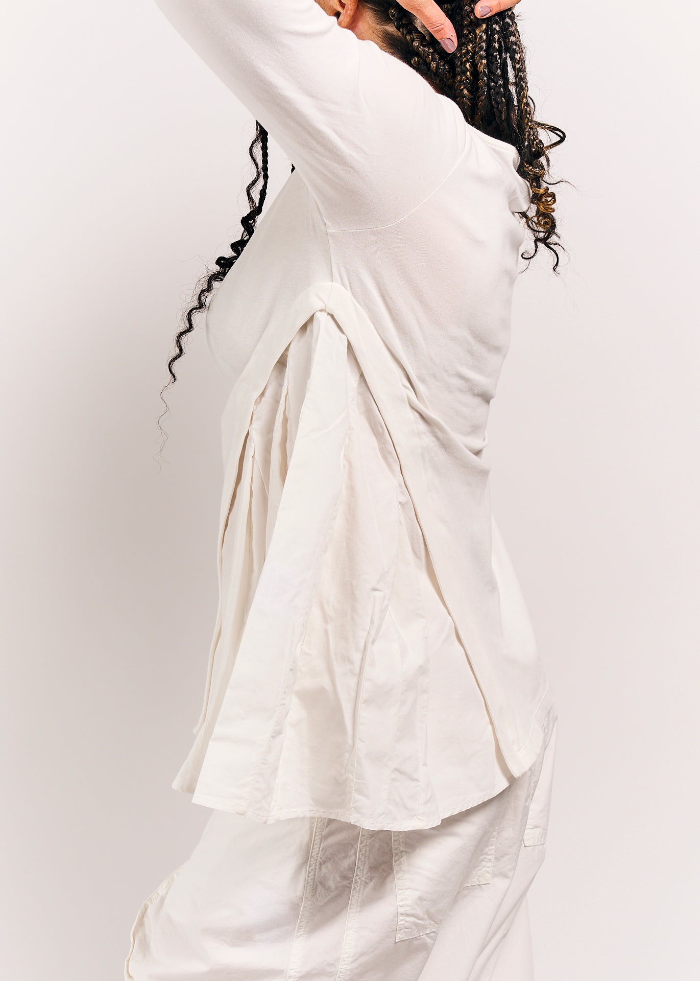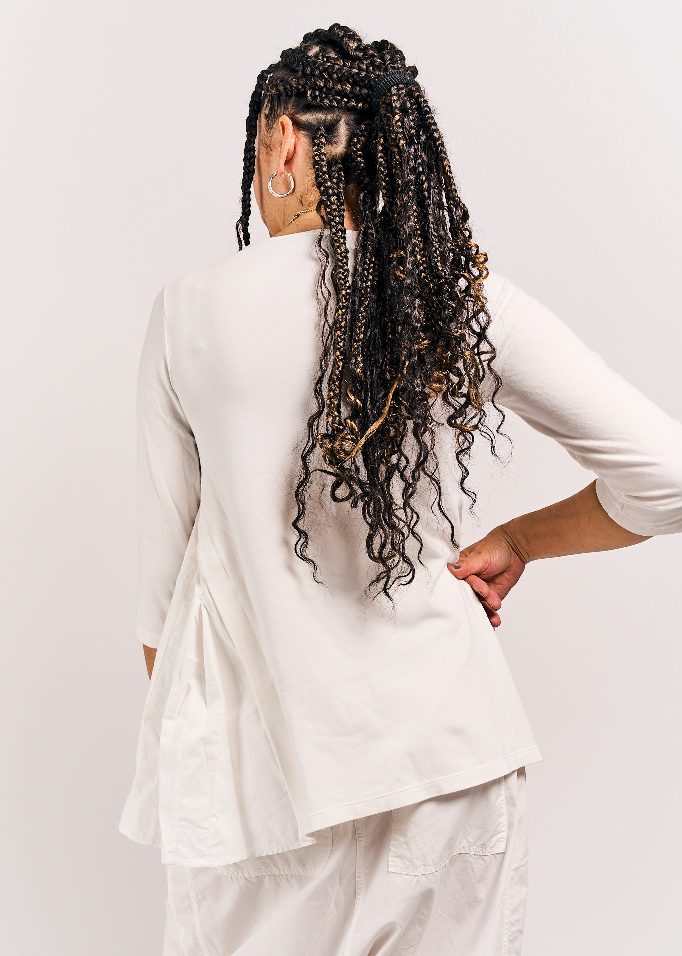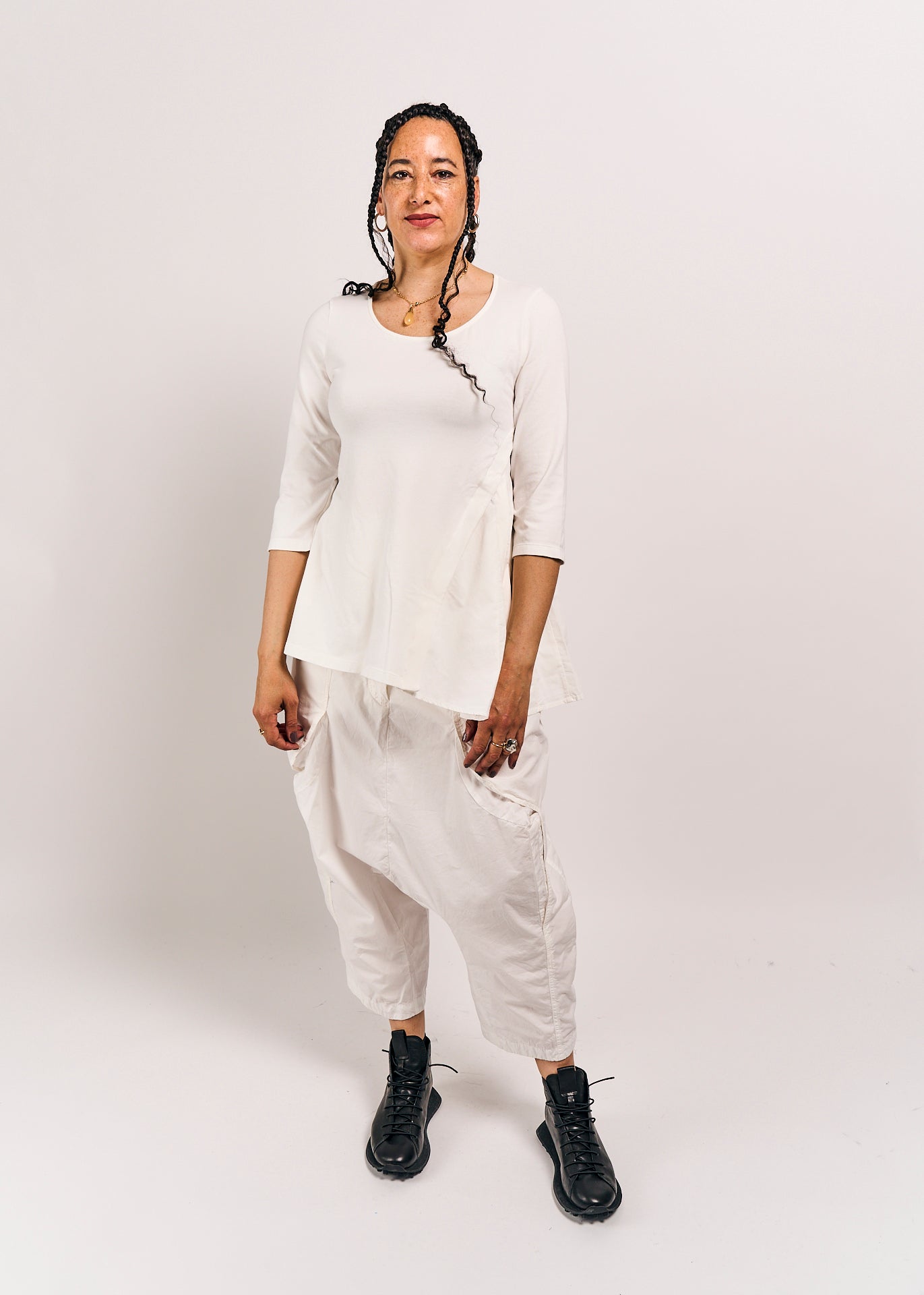 This t-shirt has a flirty a-line cut and elegant pleats from the chest and with its long sleeves this t-shirt is perfect for any occasion. The round neckline adds a touch of sophistication to this stylish piece.