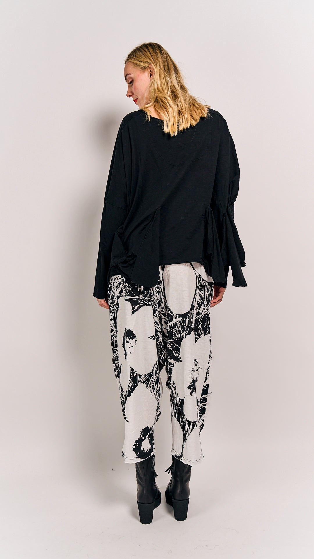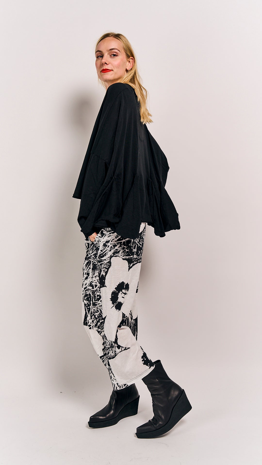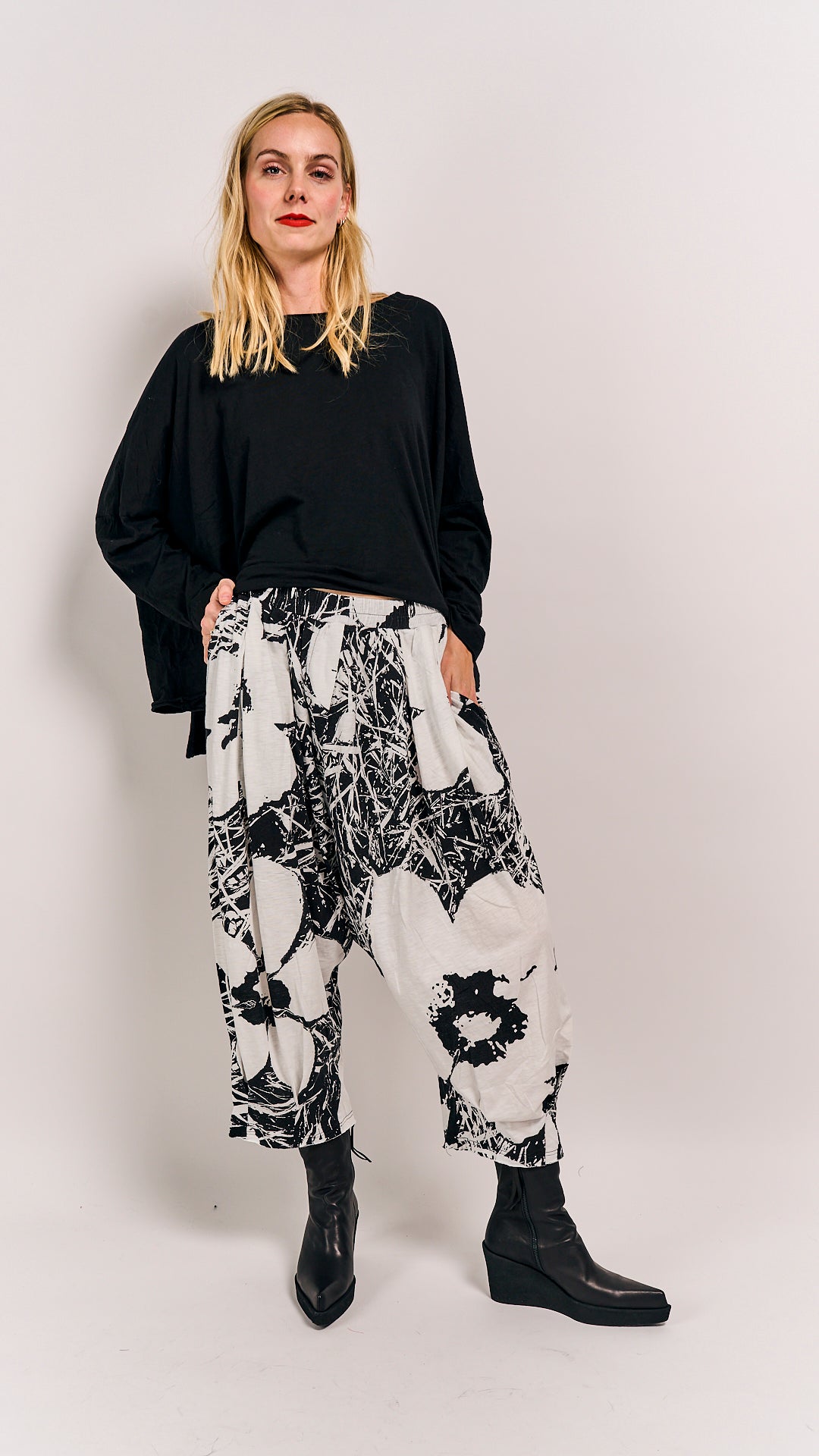 These cotton trousers from Rundholz Black Label’s winter collection bring cozy comfort to your everyday wardrobe. With a unique black and offwhite print, they add a playful twist to chilly days while keeping you warm and stylish. Perfect for mixing and matching, these trousers make winter dressing fun and effortless.