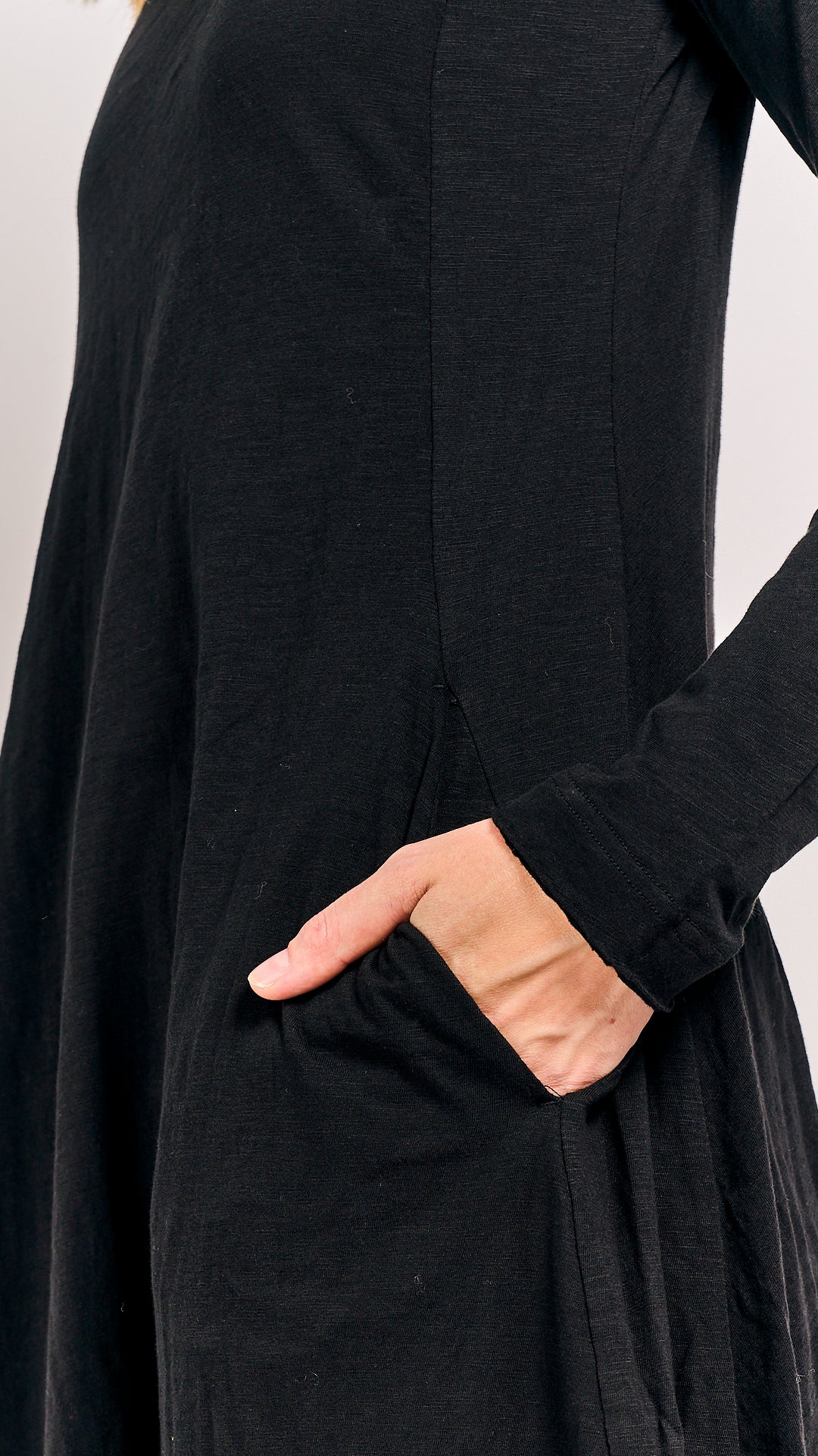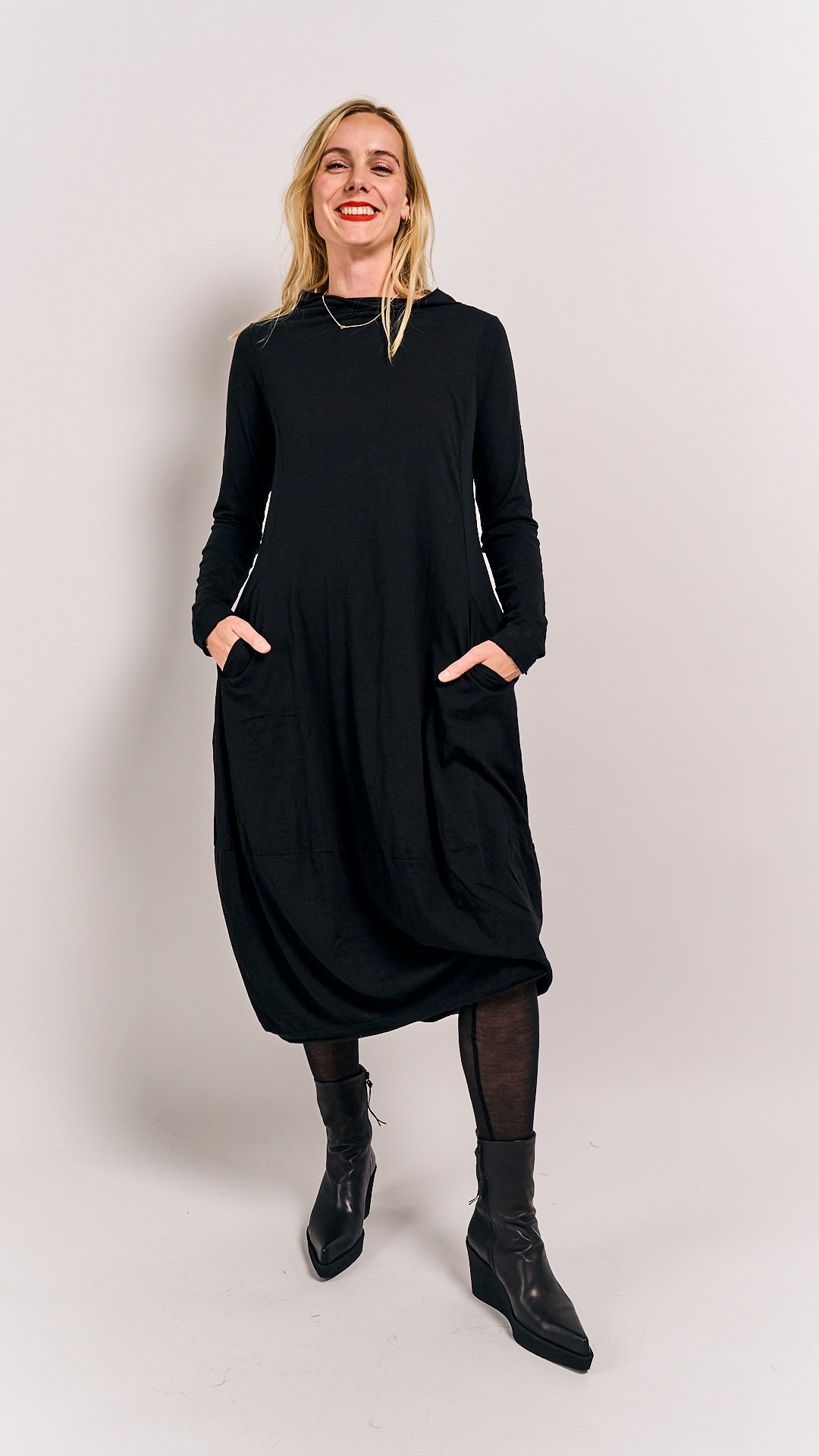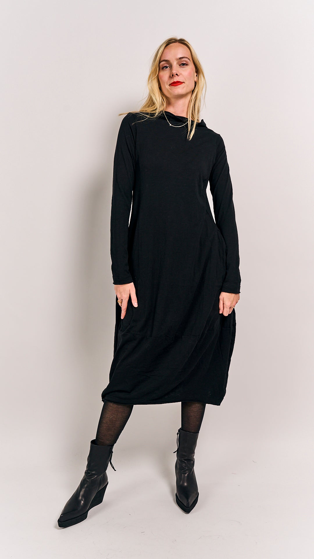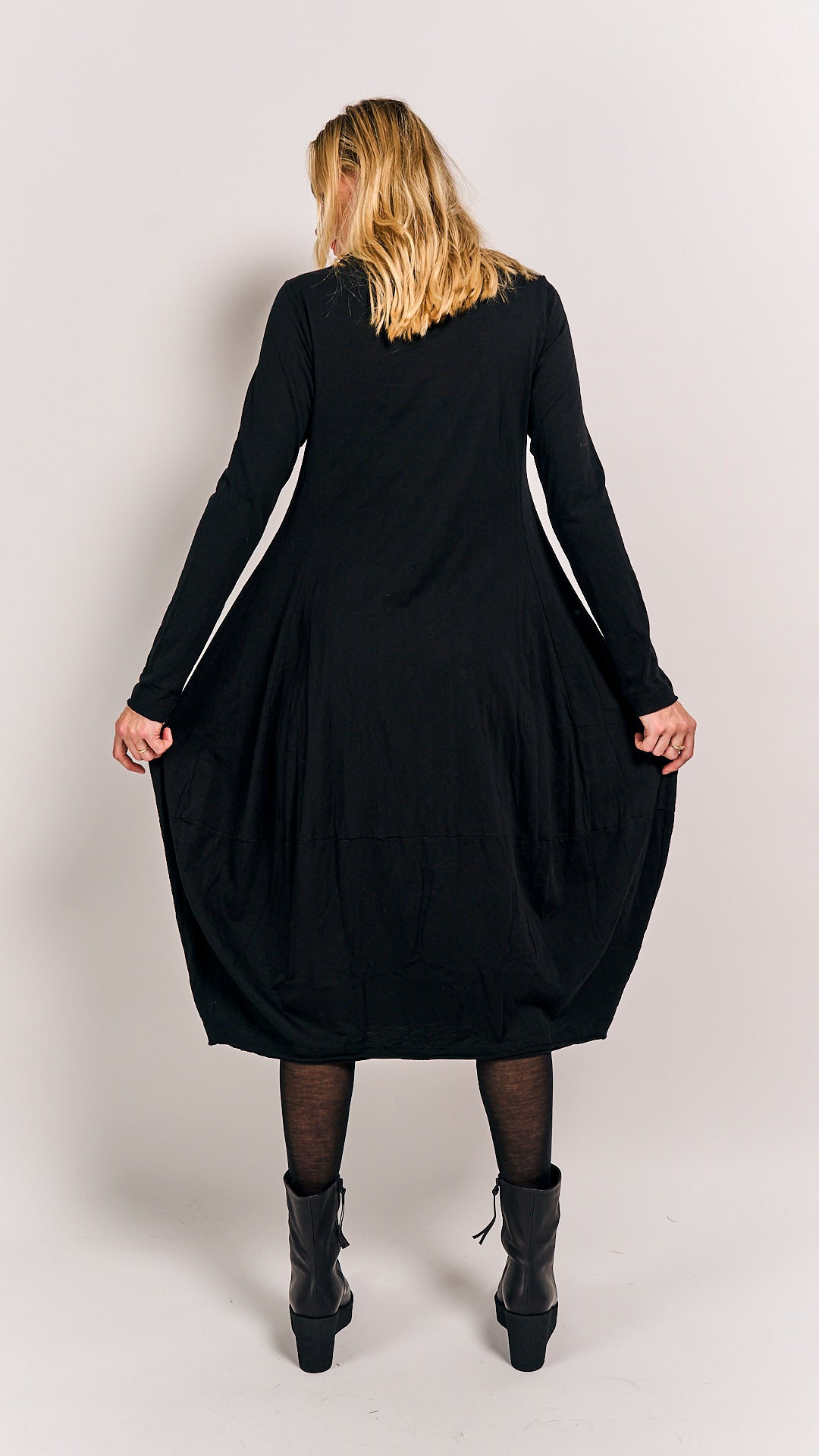This classic black dress from Rundholz Black Label’s winter collection is made from 100% cotton, combining cozy comfort with timeless style. Perfect for chilly days, it’s your go-to piece for effortless elegance with a playful twist. Dress it up or down and let your winter wardrobe shine!