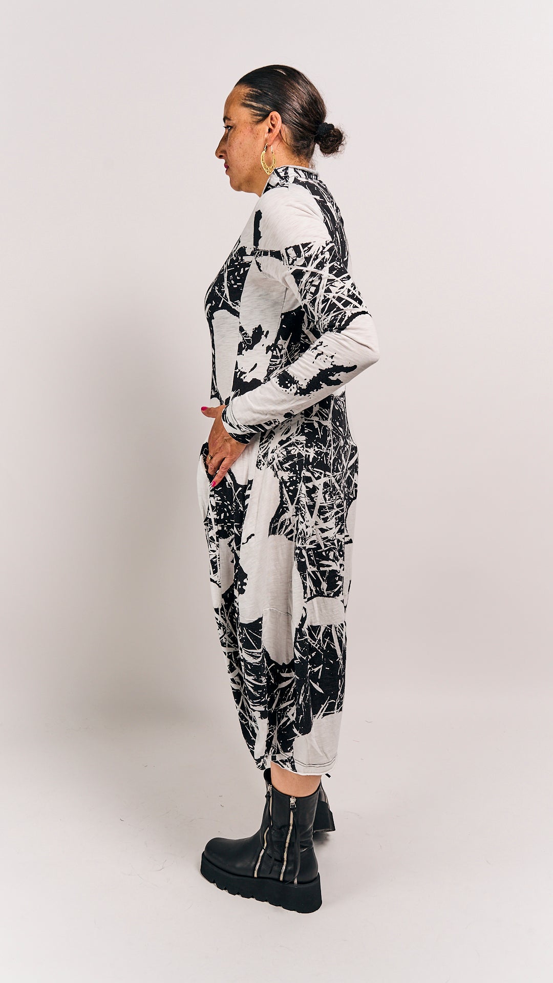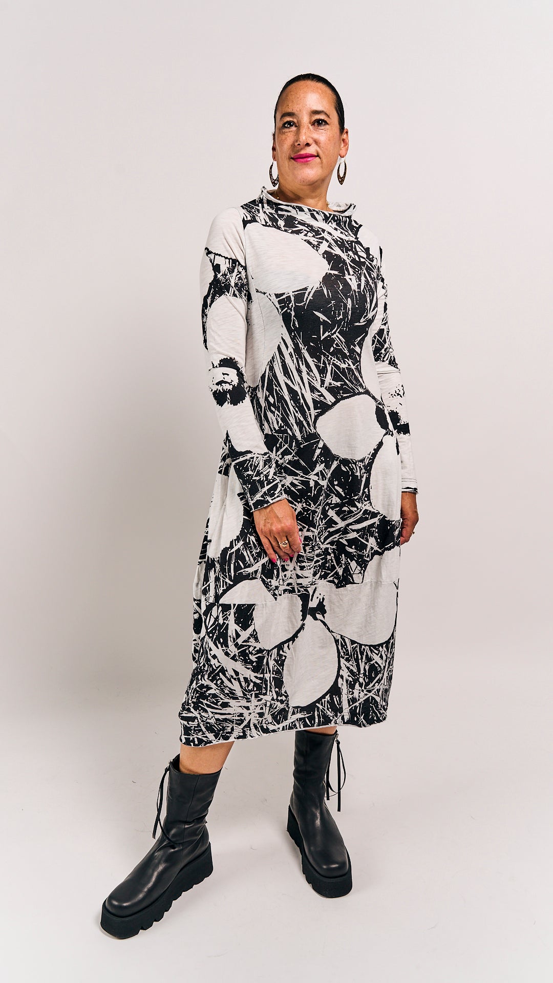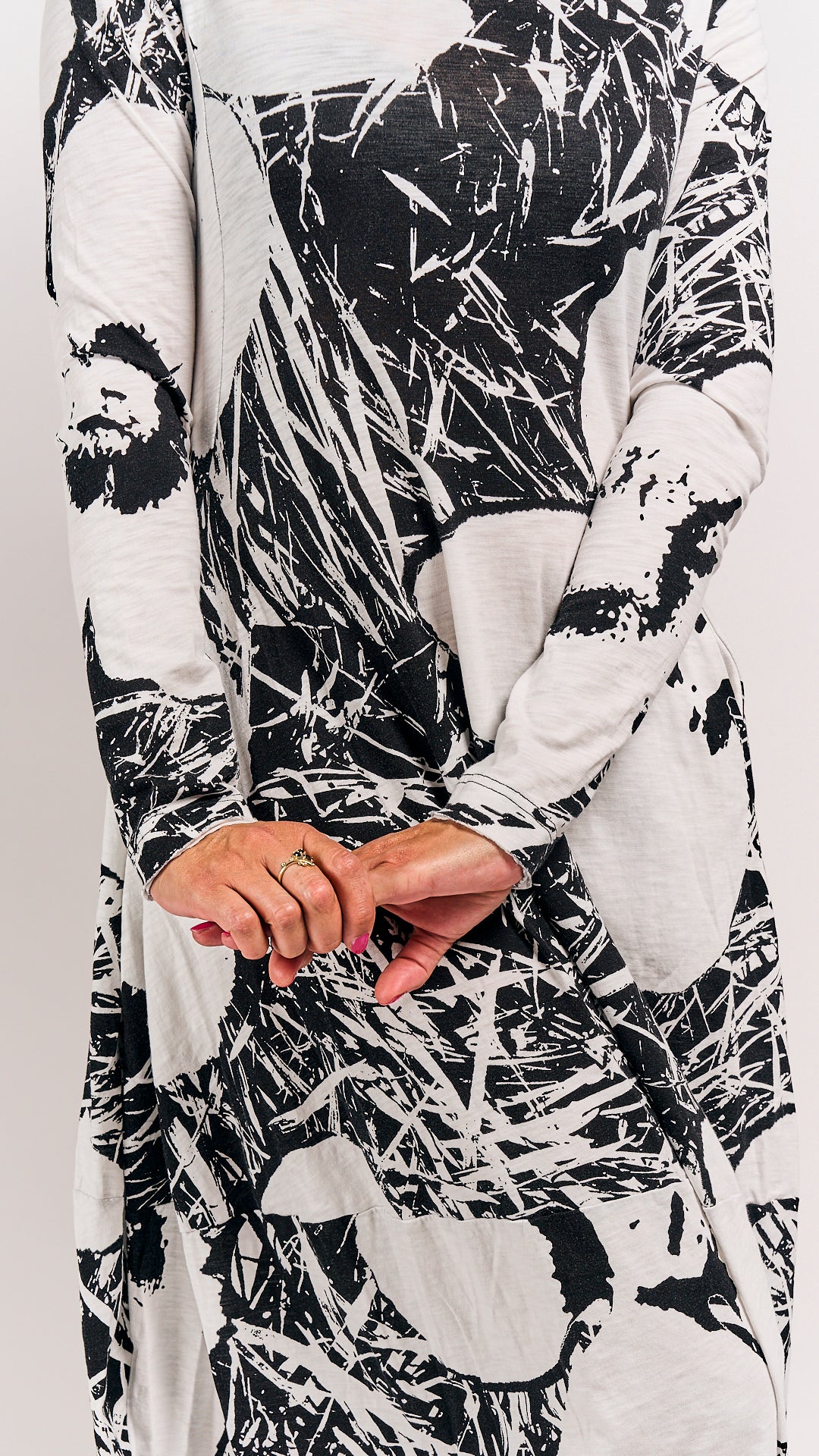 This playful dress from Rundholz Black Label features a charming offwhite print that adds a touch of whimsy to your wardrobe. Its unique design blends comfort with artistic flair, making it perfect for standing out with effortless style. Ideal for those who love to express their creativity through fashion.