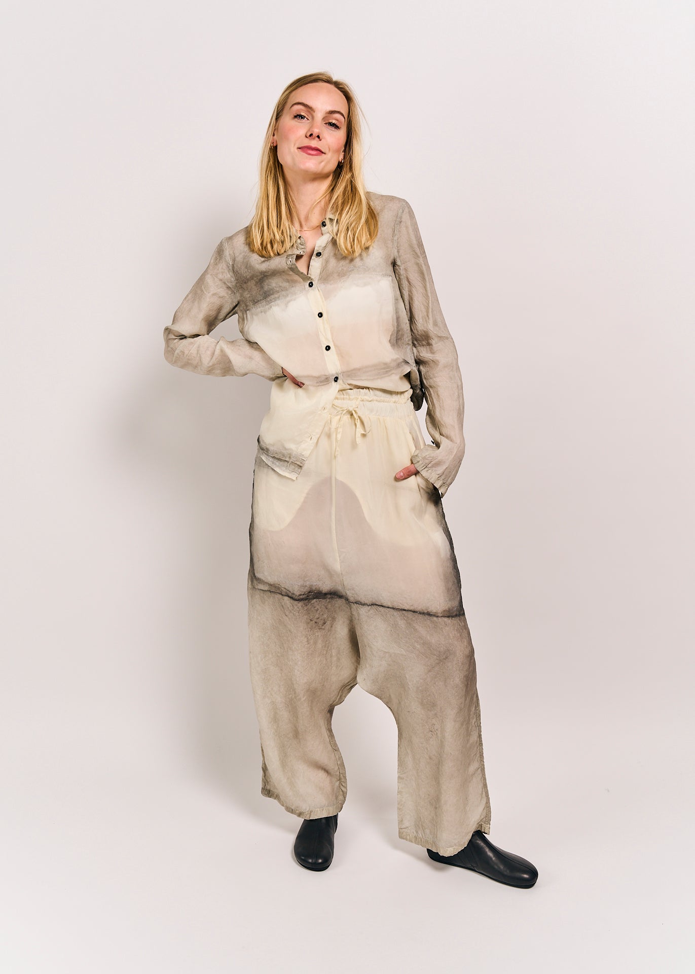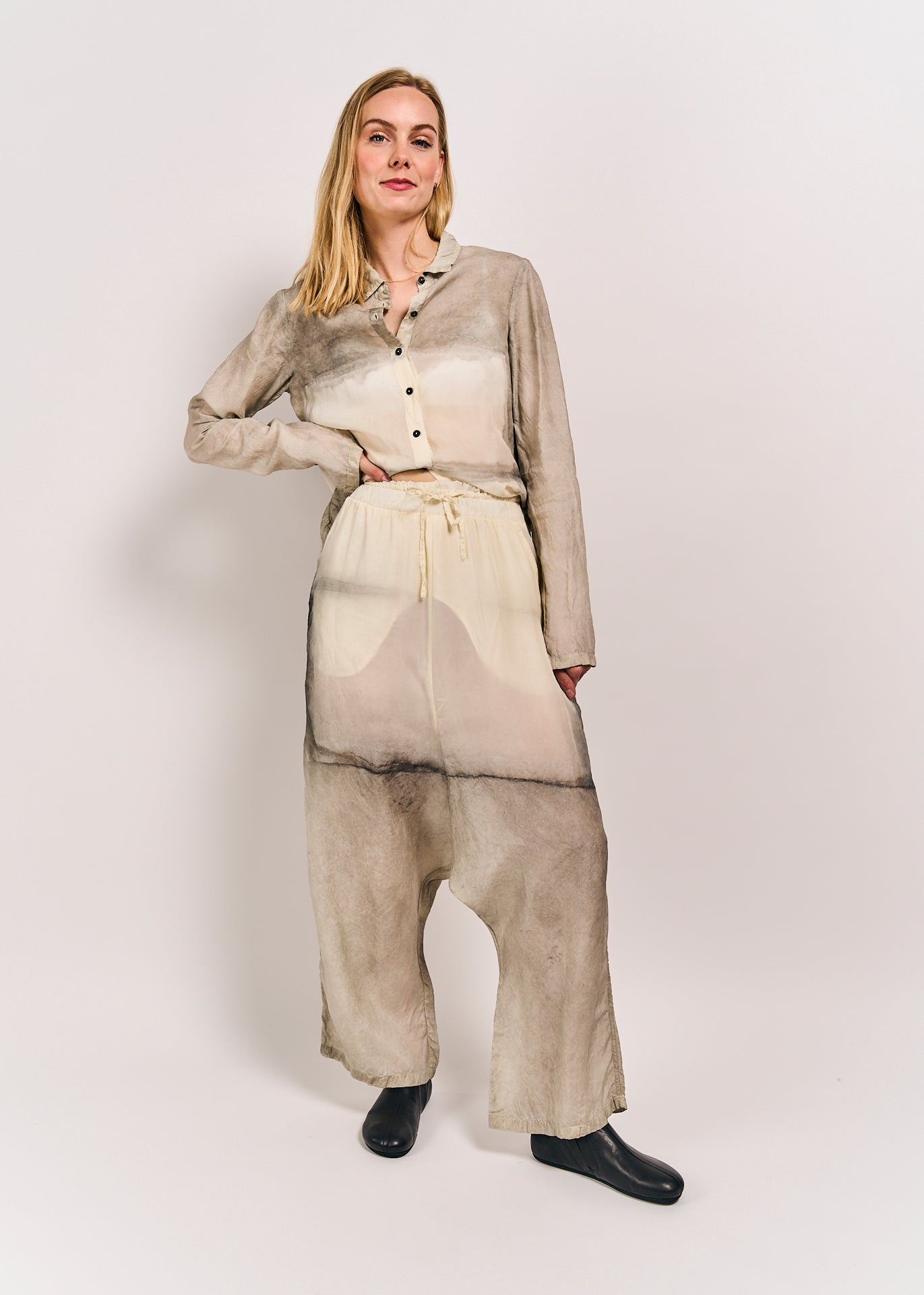 Rundholz mainline trousers in Moon Pigment print. With their stunning wide leg design, these trousers are the perfect addition to your wardrobe for the new season. Make a statement in sophistication and style.