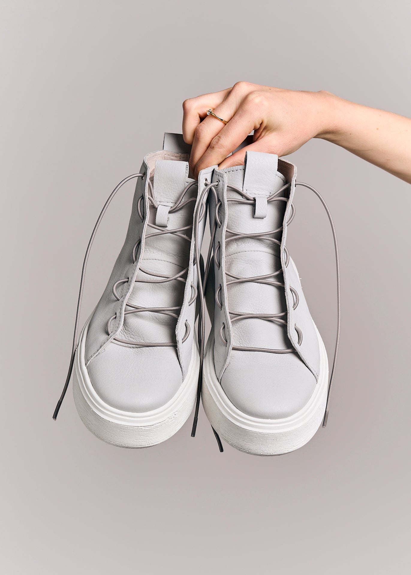 Introducing our Puro Leather Sneakers, designed for both style and comfort. These sneakers feature ankie boots for a secure fit, and stretch leather straps for added flexibility and movement. Crafted with stretchy calf leather, these sneakers are perfect for all-day wear. Elevate your look with the sleek and versatile In Focus Grey-White design.