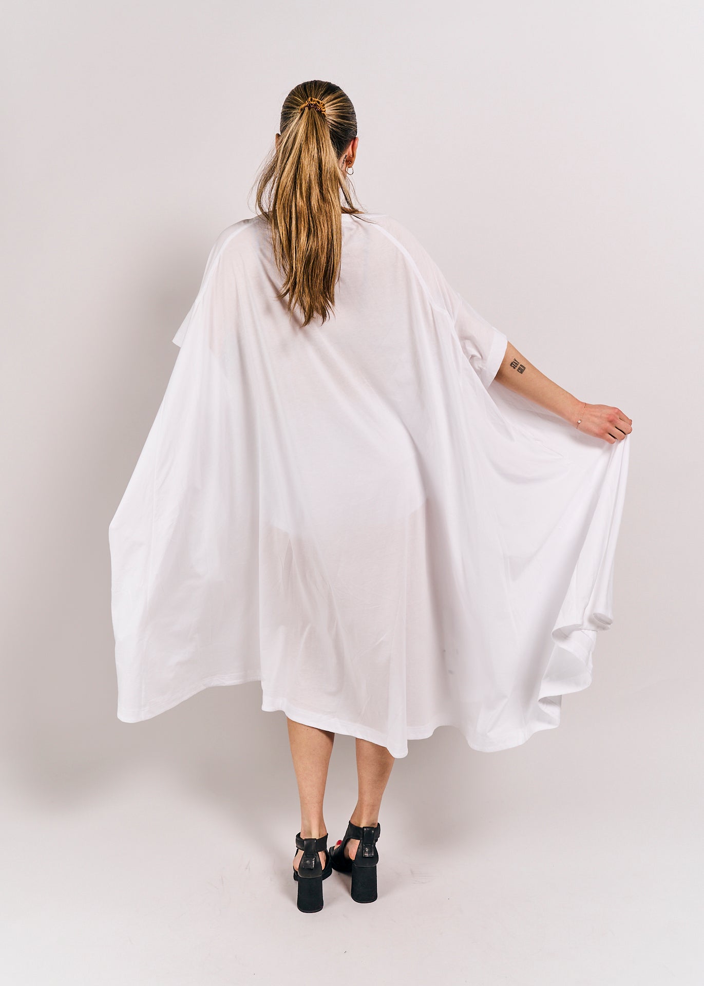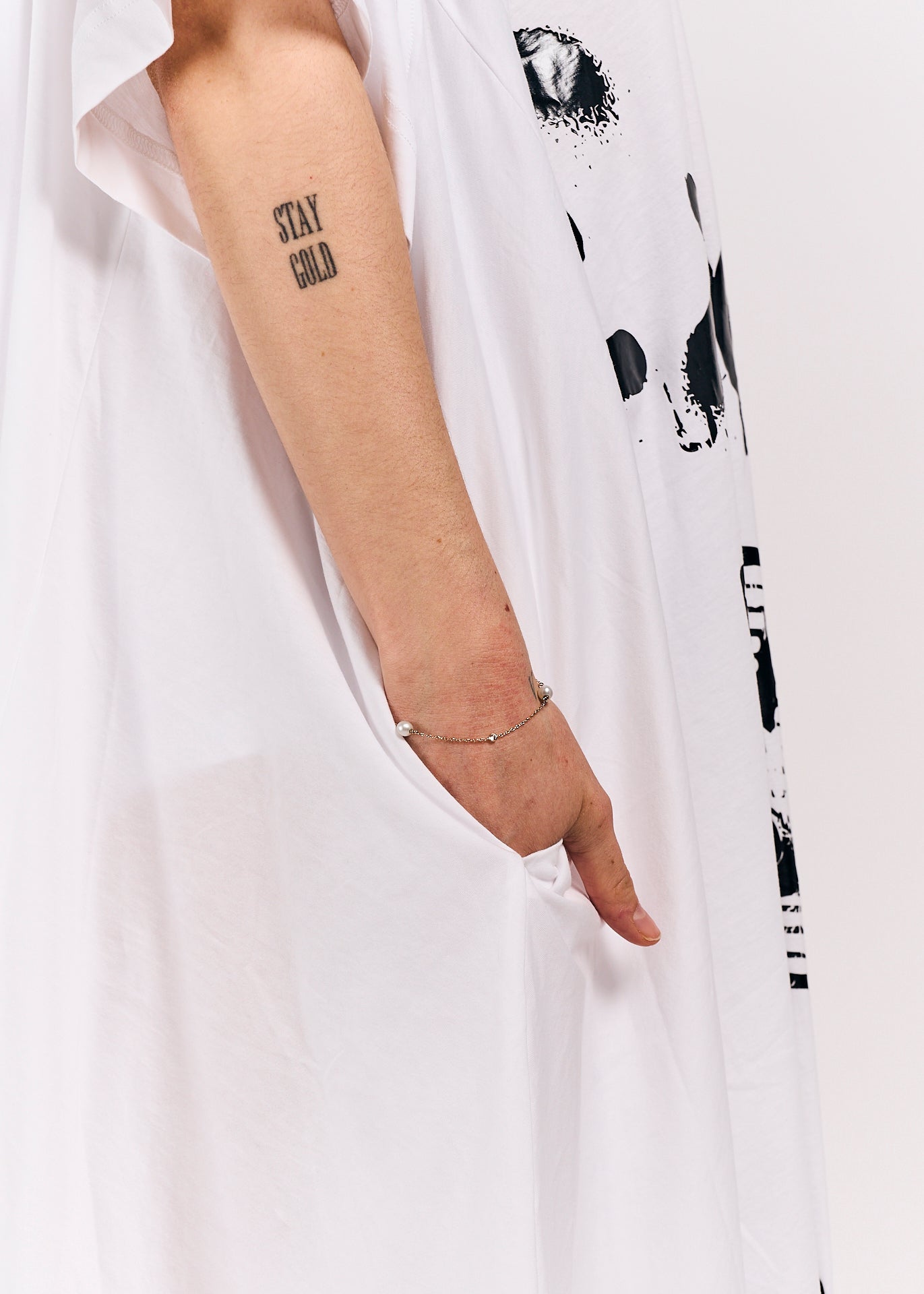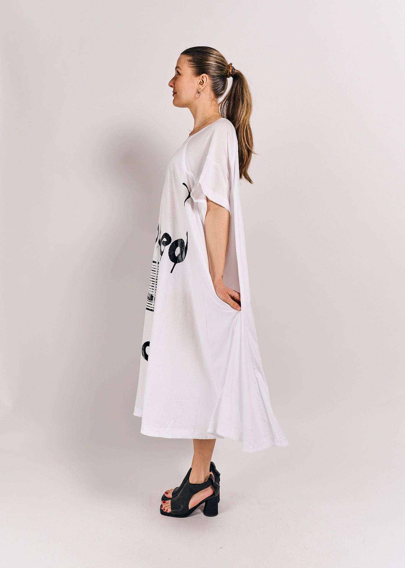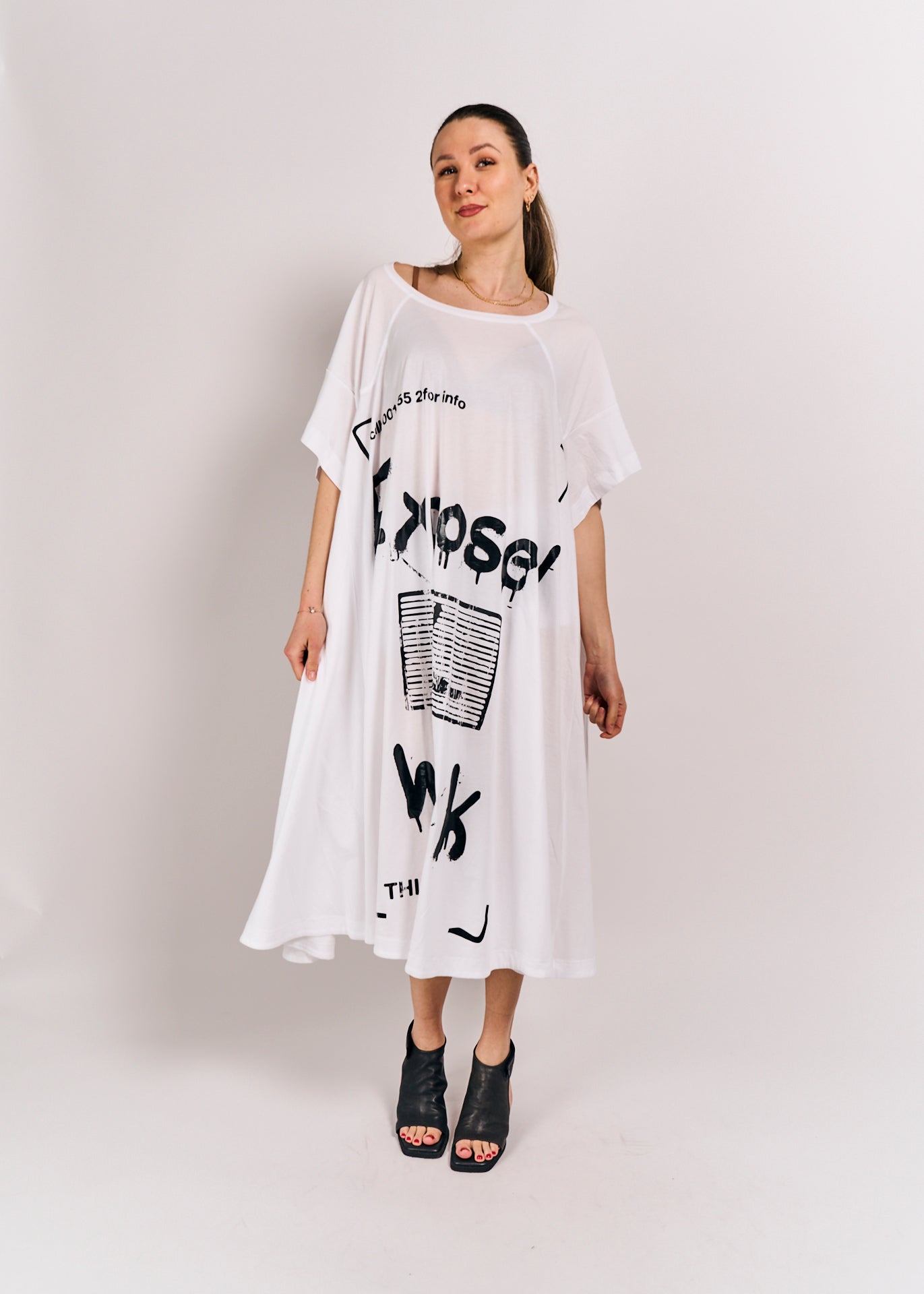 Effortlessly stylish and comfortable, the Rundholz DIP Dress is a must-have for your wardrobe. The long and wide a-line design flatters all body types, while the unique black print adds a touch of artistic flair. With short sleeves and a wide round neckline, this dress is perfect for any occasion.
