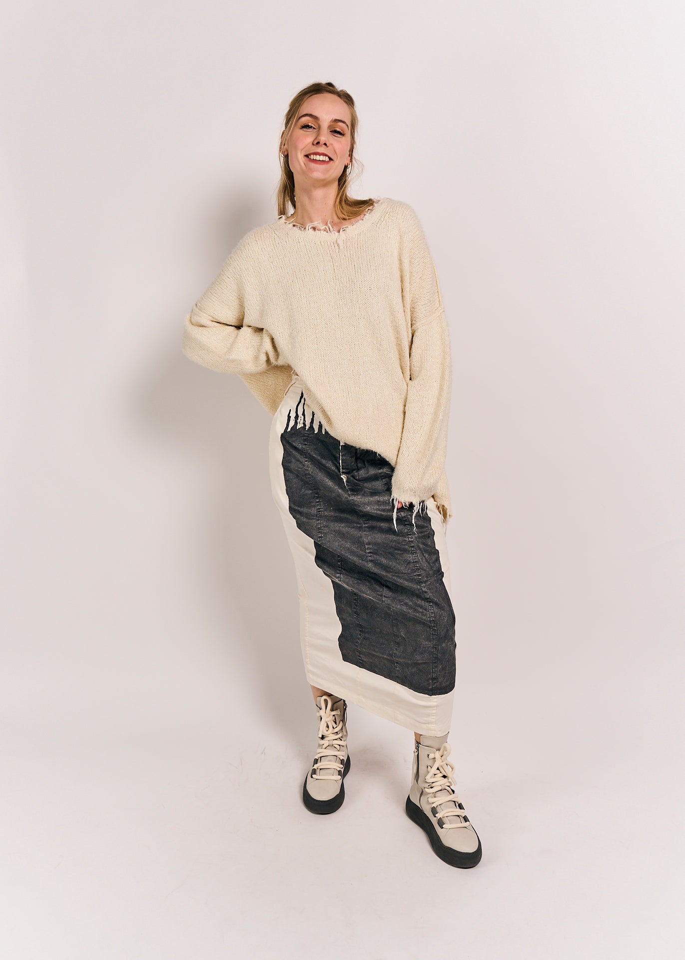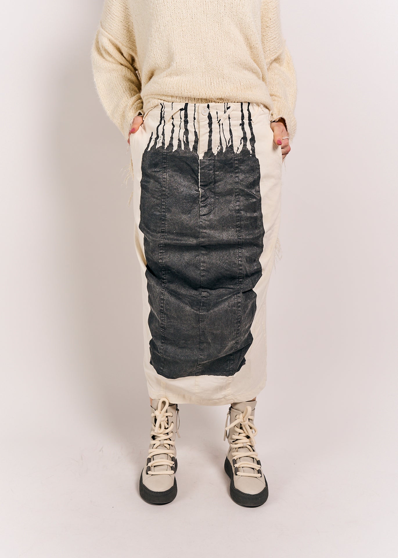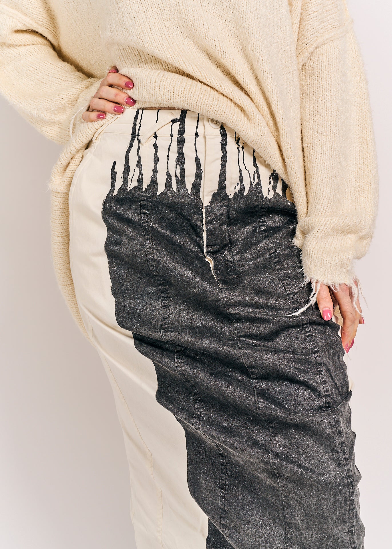 Get ready to make a statement with the Rundholz Mainline Skirt in Black Paint! This long, fitting, straight skirt features a shiny material that will have you shining like a star. The unique print at the front adds a touch of playfulness to your look. Stand out from the crowd and let your personality shine in this must-have skirt!